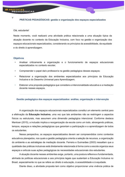 PRÁTICAS PEDAGÓGICAS – GESTÃO E ORGANIZAÇÃO DOS ESPAÇOS ESPECIALIZADOS