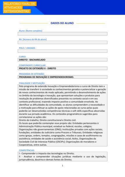 PROJETO DE EXTENSÃO II – DIREITO