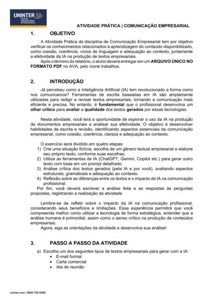 ATIVIDADE PRÁTICA – COMUNICAÇÃO EMPRESARIAL