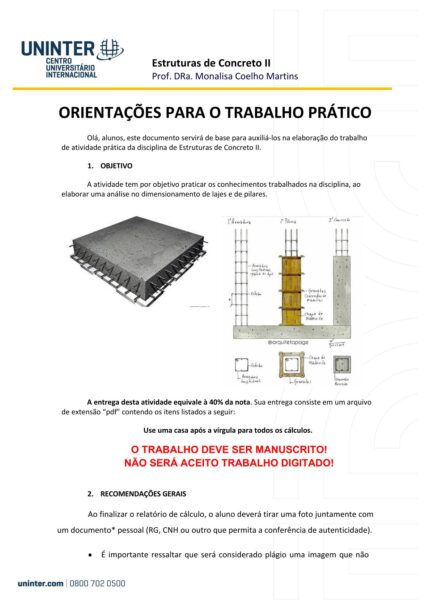 TRABALHO PRÁTICO – ESTRUTURAS DE CONCRETO II – VERSÃO 2025 (PRIMEIRO SEMESTRE)