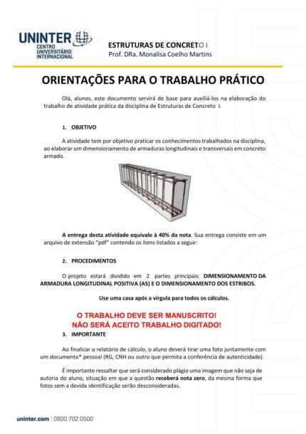 TRABALHO PRÁTICO – ESTRUTURAS DE CONCRETO I – VERSÃO 2025 (PRIMEIRO SEMESTRE)