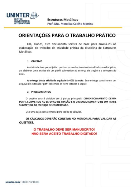 TRABALHO PRÁTICO – ESTRUTURAS METÁLICAS – VERSÃO 2025 (PRIMEIRO SEMESTRE)