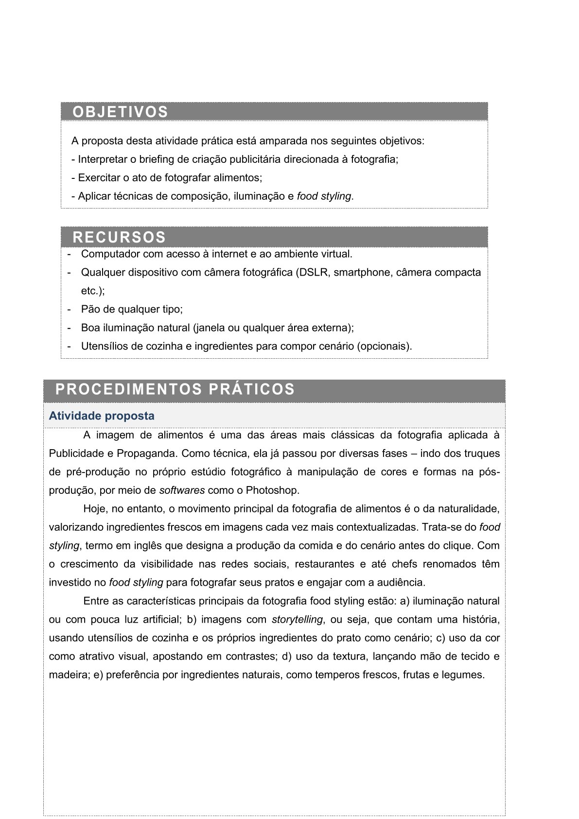 ATIVIDADE PRÁTICA – FOTOGRAFIA APLICADA À PUBLICIDADE E PROPAGANDA