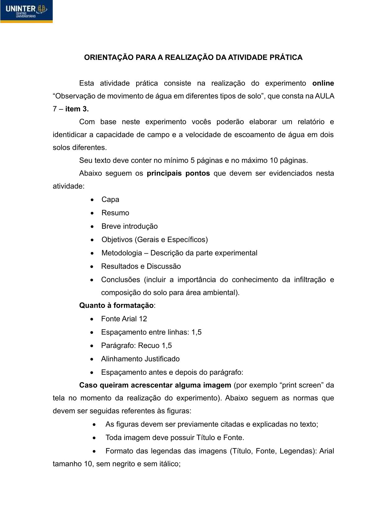 ORIENTAÇÃO PARA A REALIZAÇÃO DA ATIVIDADE PRÁTICA
