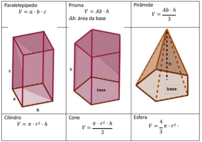 o caso do paralelepípedo, do cilindro, do cone e da esfera. Veja abaixo: