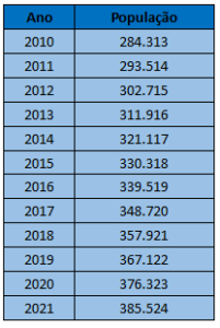 Fazer a projeção populacional para o ano 2.035 de uma cidade que tem os seguintes dados: