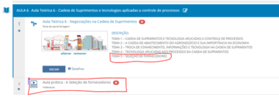 - Leia o material da Aula 6 – tema 5 Seleção de Fornecedores