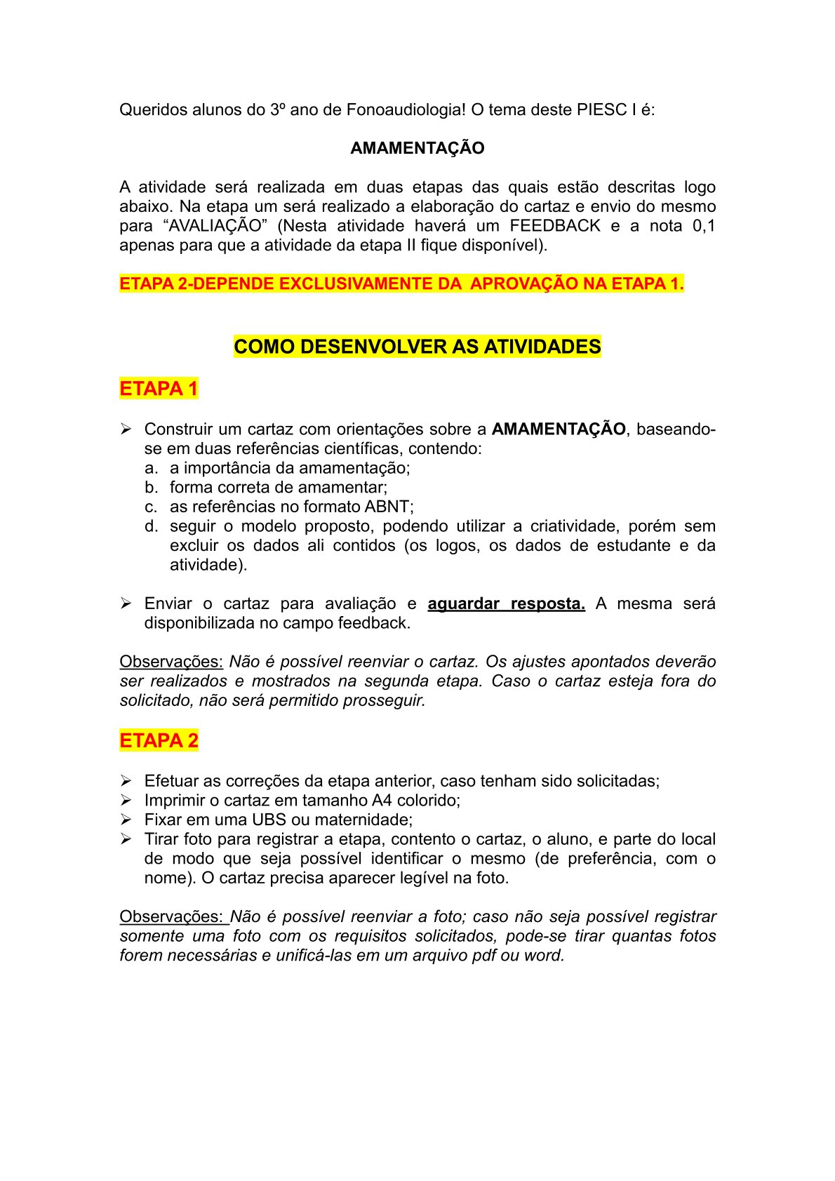 PIESC I – FONOAUDIOLOGIA – AMAMENTAÇÃO
