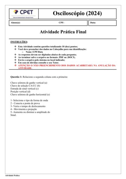 ☐ 0 ☐ 1 ☐ 2 ☐ 3 ☐ 4 ☐ 5 ☐ 6 ☐ 7 ☐ 8 ☐ 9 ☐ 10A atividade é relevante para a sua formação e articulação de competências e conteúdos?