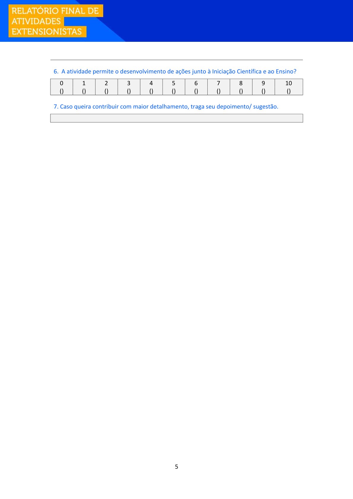 6. Possibilidade de articulação com Iniciação Científica e Ensino.