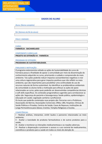 Após realizar suas atividades de extensão, é necessário formalizá-las por meio deste relatório e enviá-lo para avaliação no AVA, comprovando sua atuação.