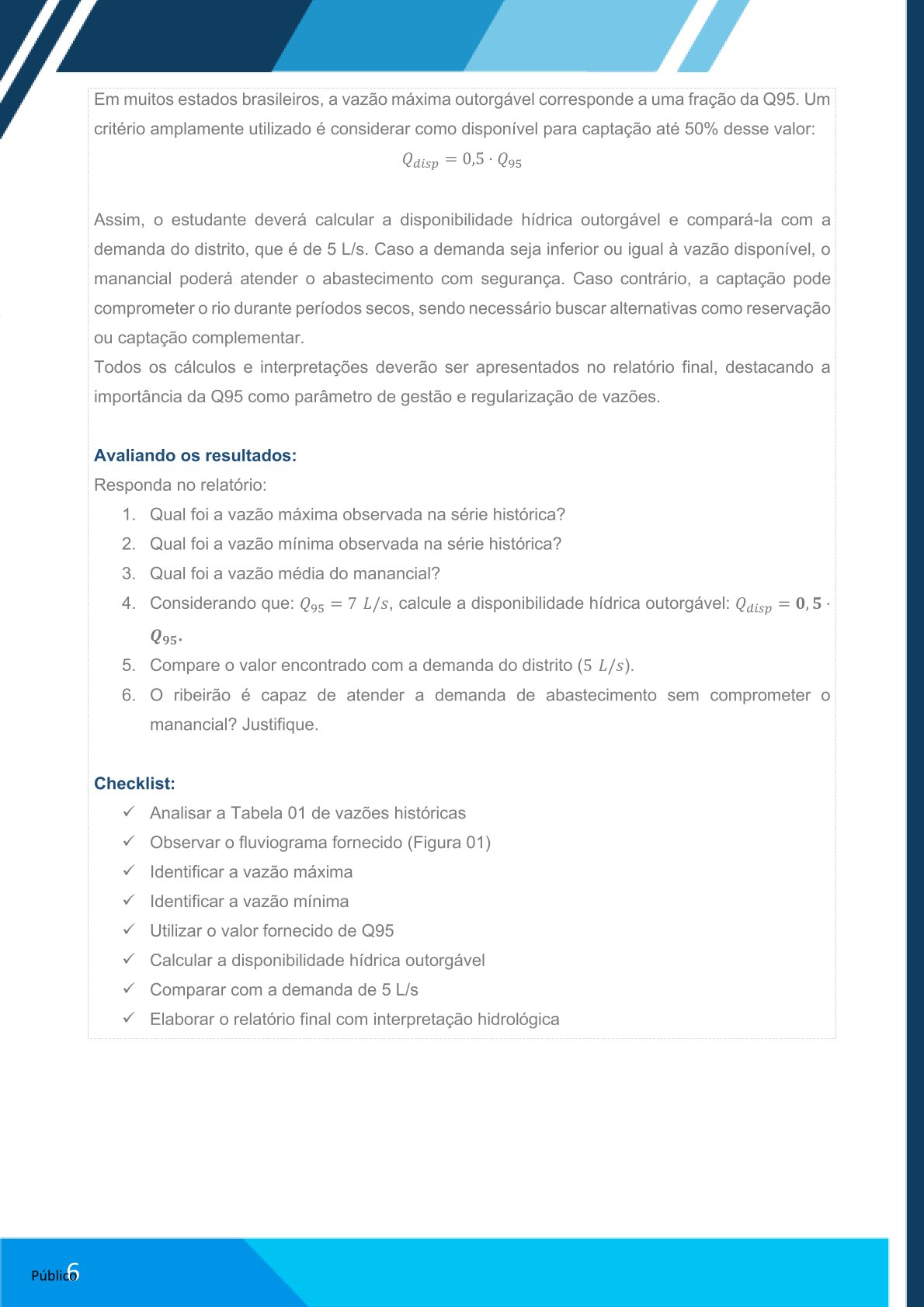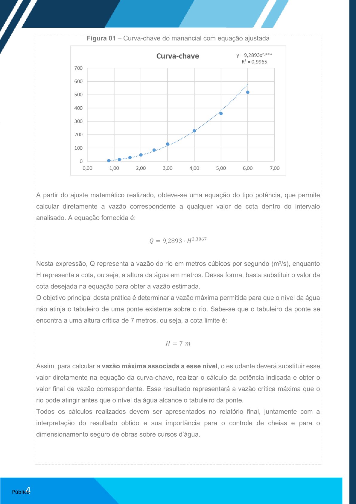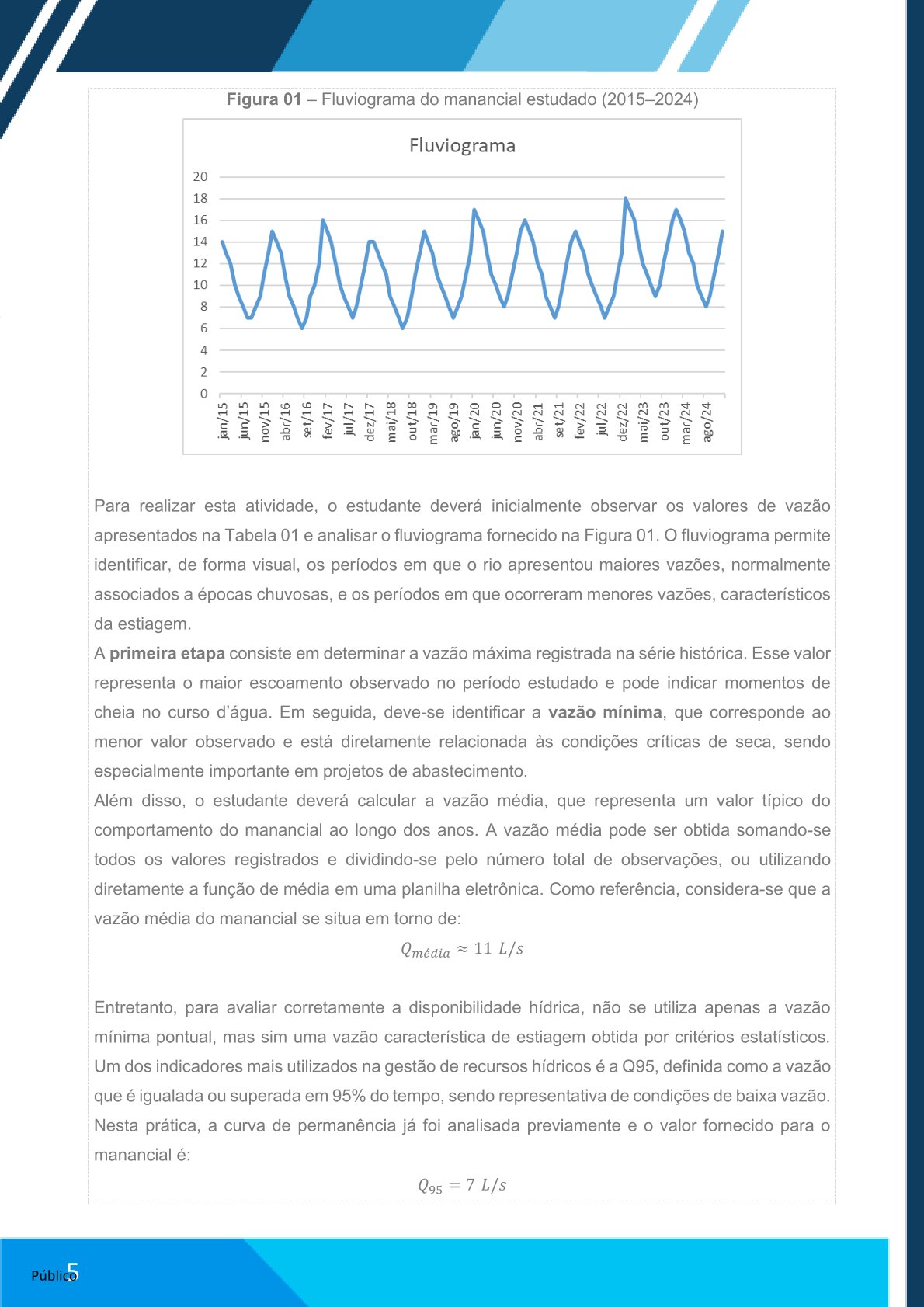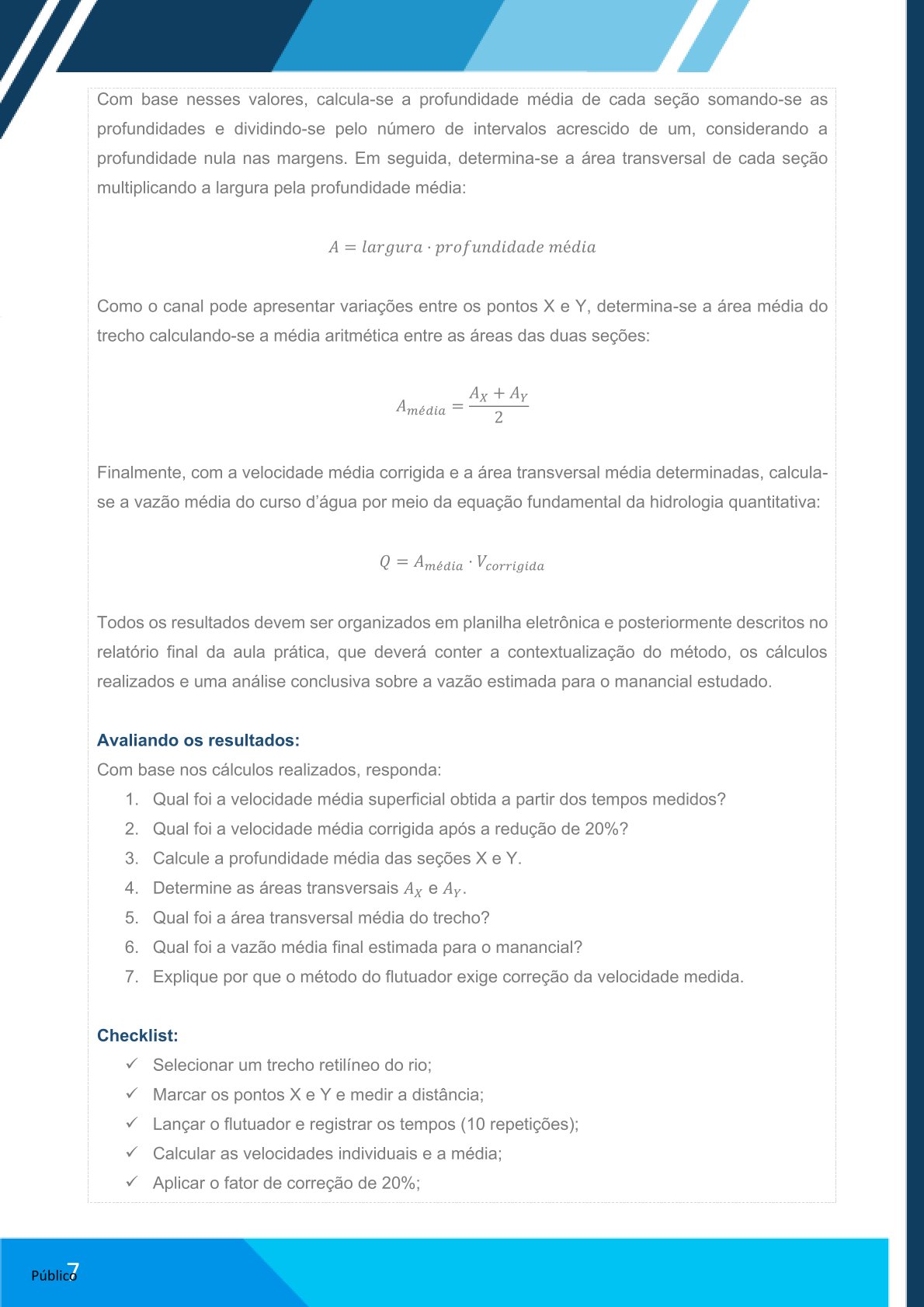 Elaborar relatório no Word com: contextualização do método, cálculos realizados e análise da vazão estimada.