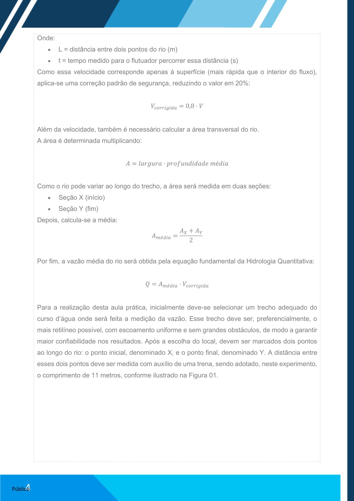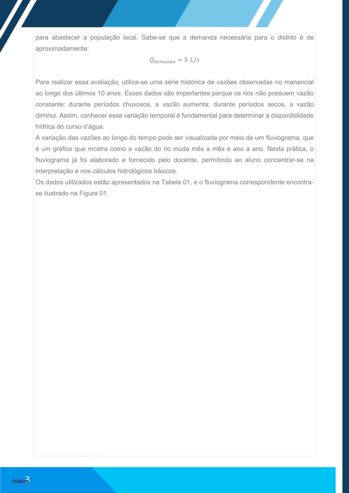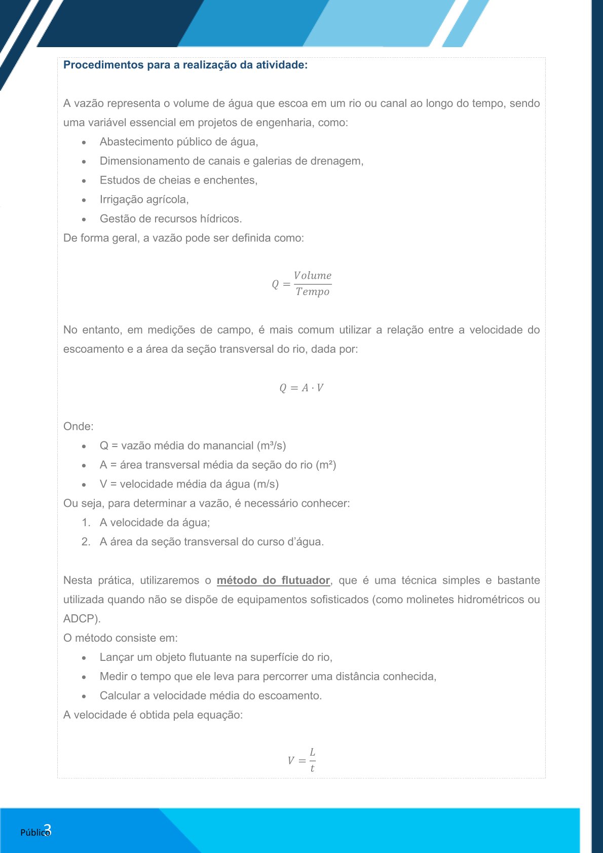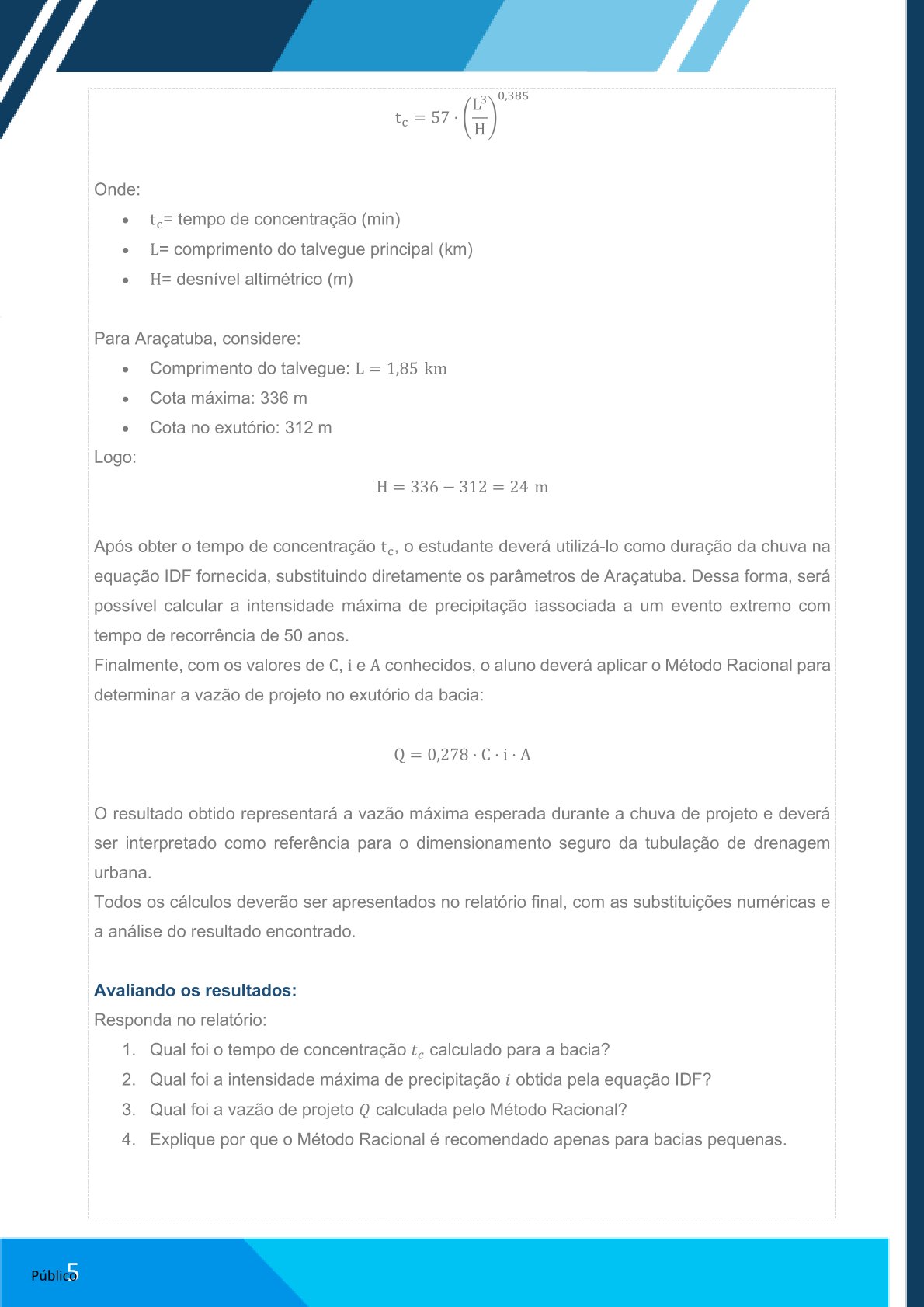 Elaborar relatório no Word com: contextualização do método, cálculos realizados e análise da vazão estimada.