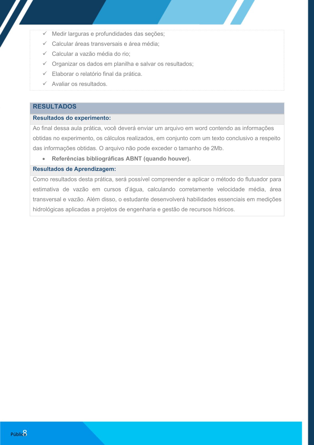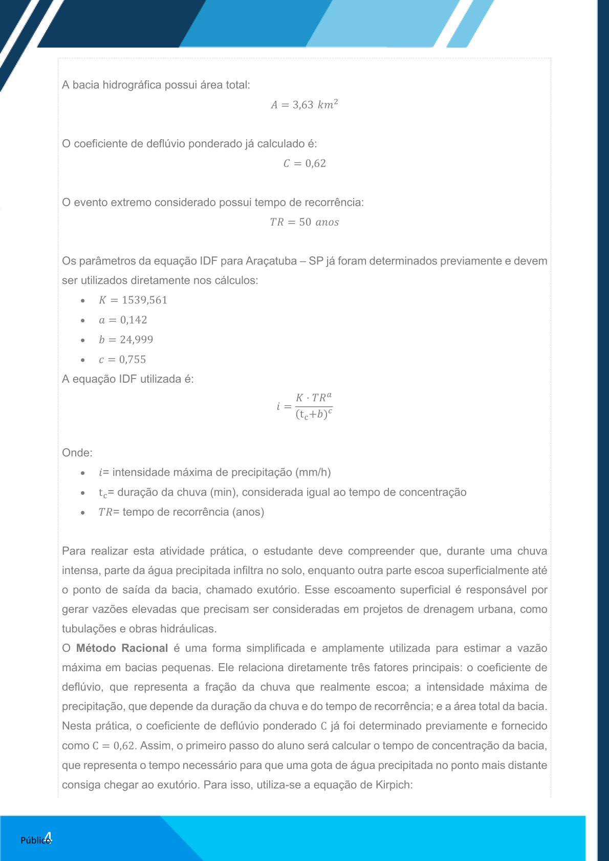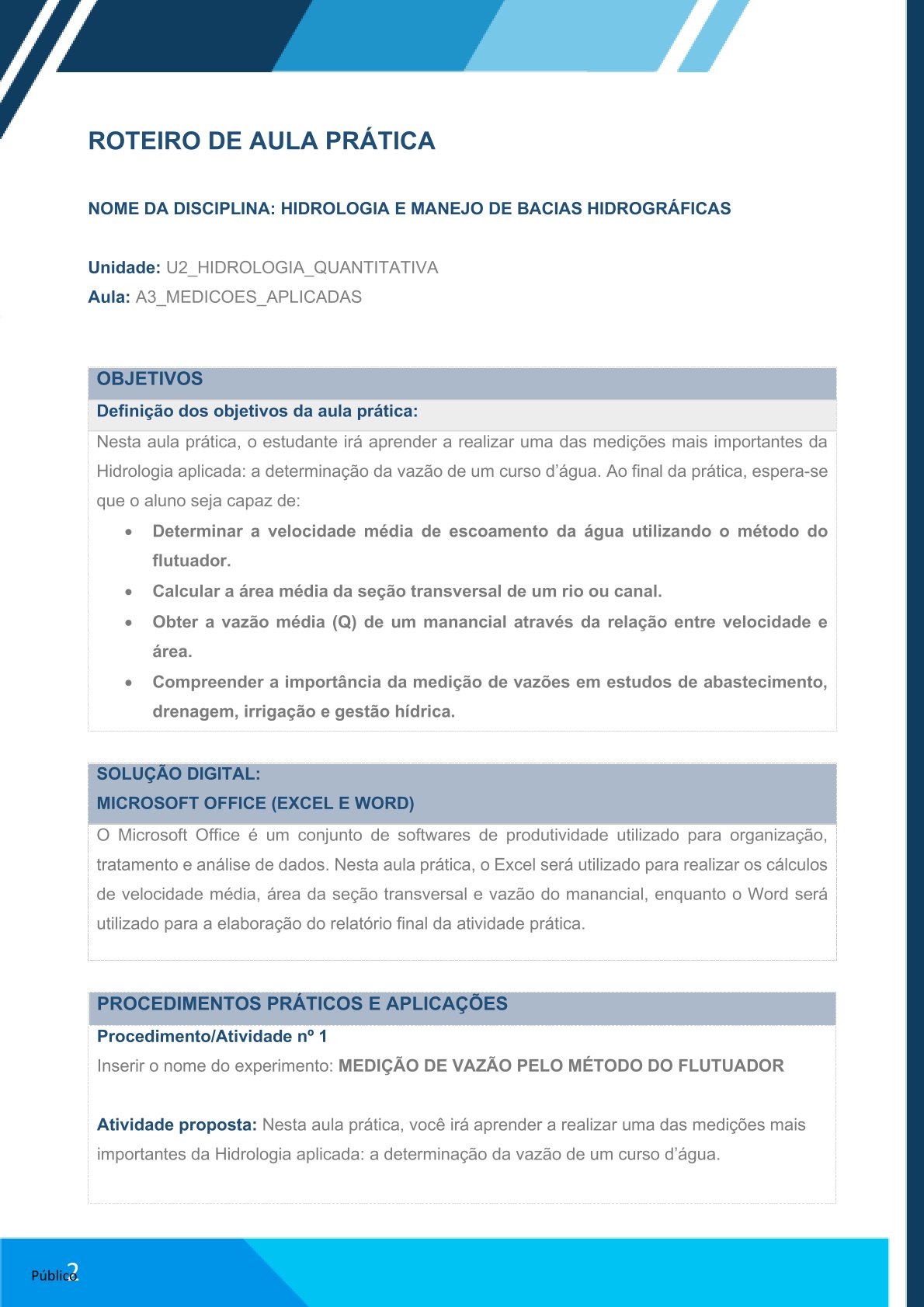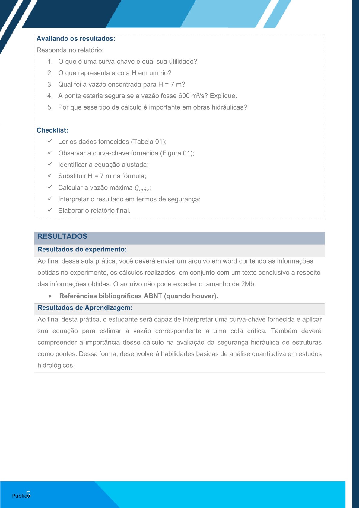 Elaborar relatório no Word com: contextualização do método, cálculos realizados e análise da vazão estimada.