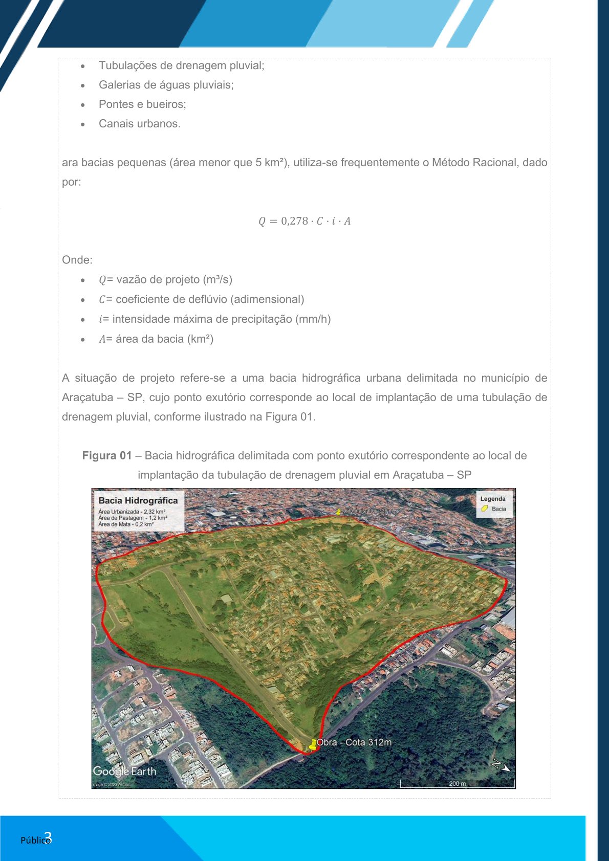 Determinar a vazão máxima de projeto gerada por um evento extremo de chuva em uma bacia hidrográfica urbana.Passo 1 – Determinar o tempo de concentração (tc)
