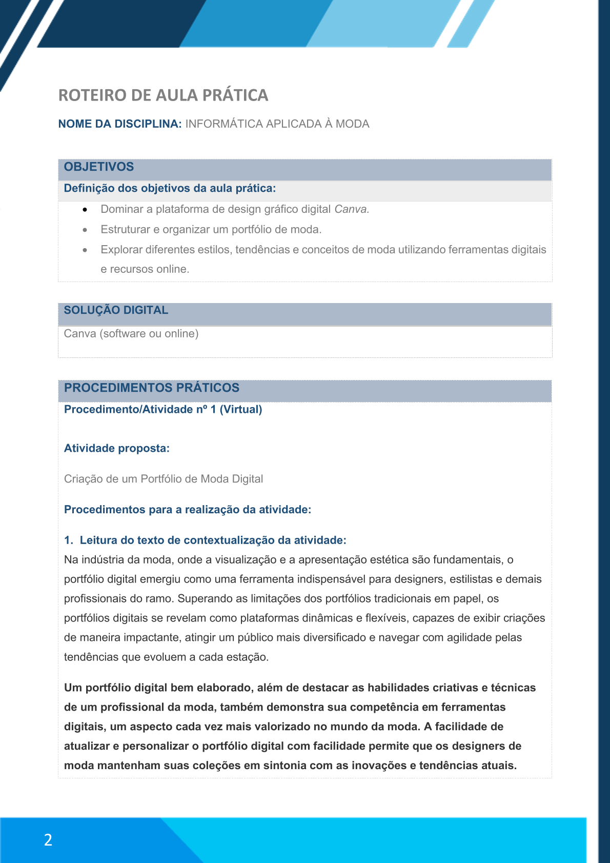 NOME DA DISCIPLINA: INFORMÁTICA APLICADA À MODA