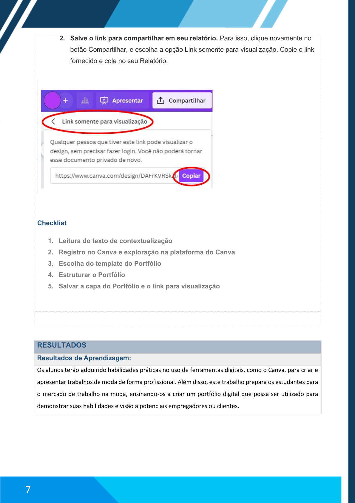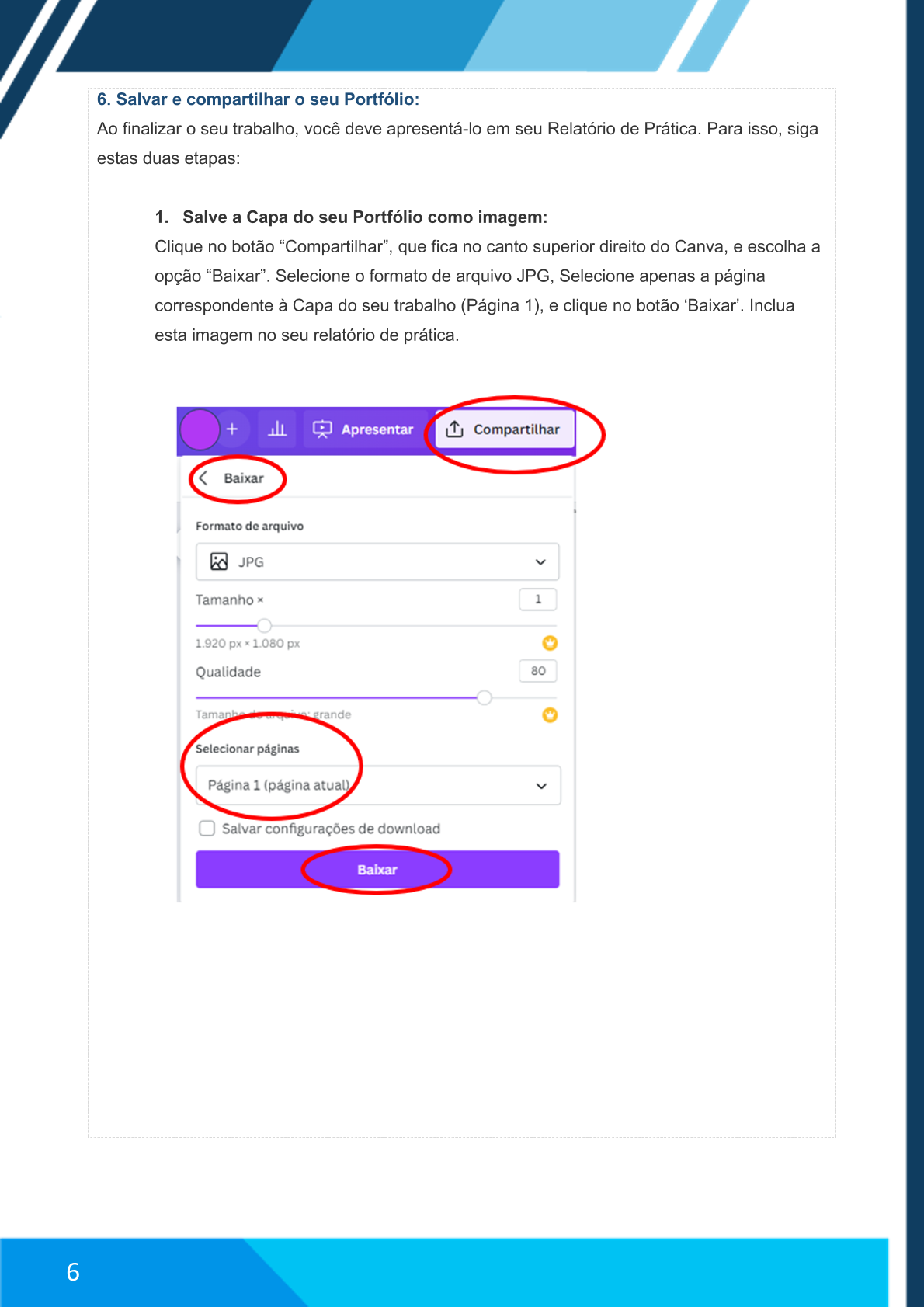 6. Salvar e compartilhar o seu Portfólio: