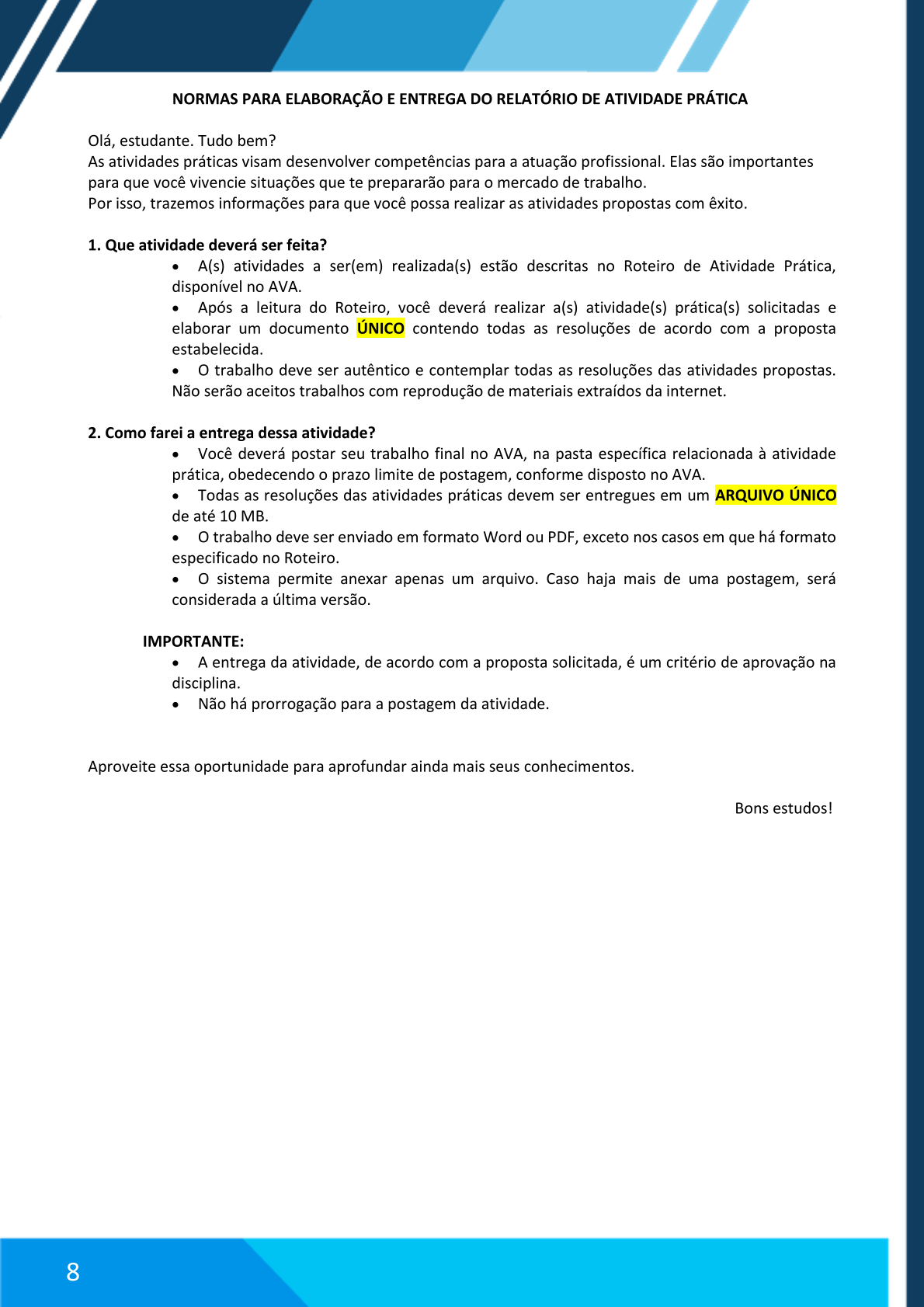 NORMAS PARA ELABORAÇÃO E ENTREGA DO RELATÓRIO DE ATIVIDADE PRÁTICA
