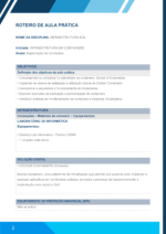 ROTEIRO DE AULA PRÁTICA NOME DA DISCIPLINA: INFRAESTRUTURA ÁGIL Unidade: INFRAESTRUTURA EM CONTAINERS Seção: Implantação de Containers OBJETIVOS Definição dos objetivos da aula prática: • Compreender os conceitos fundamentais de containers, Docker e Kubernetes. • Capacitar os alunos na instalação e utilização básica de Docker Containers. • Demonstrar a arquitetura e funcionamento do Kubernetes. • Explorar exemplos de replicação e padronização de containers. • Introduzir práticas de monitoramento de containers e sistemas virtualizados. INFRAESTRUTURA Instalações – Materiais de consumo – Equipamentos: LABORATÓRIO DE INFORMÁTICA Equipamentos: • Desktop Lab Informatica – Positivo C6300 ~ 1 un para cada aluno SOLUÇÃO DIGITAL • DOCKER CONTAINERS (Software) Docker Containers: uma plataforma de virtualização que permite aos usuários criar, implantar e executar aplicativos em contêineres isolados, tornando o processo de desenvolvimento e implantação mais rápido e fácil. EQUIPAMENTO DE PROTEÇÃO INDIVIDUAL (EPI) Não se aplica 3 PROCEDIMENTOS PRÁTICOS Procedimento/Atividade nº 1 (Físico) Atividade proposta: Implantação de Containers com Docker e Kubernetes. Procedimentos para a realização da atividade: Passo 1: Introdução aos Containers e Docker · Assista ao vídeo introdutório sobre containers. · Faça a leitura de um artigo destacando as vantagens do Docker. · Traga em uma resenha os principais pontos. Passo 2: Arquitetura e Funcionamento do Kubernetes · Realize um tutorial interativo online sobre os componentes do Kubernetes. · Desenhe um diagrama simples representando a arquitetura do Kubernetes. Passo 3: Instalar e verificar o funcionamento do Docker. Certifique-se de estar utilizando um sistema operacional compatível com o Docker. O Docker é compatível com uma variedade de sistemas operacionais, incluindo Linux, Windows e macOS. Verifique os requisitos específicos para o seu sistema no site oficial do Docker. · Linux: Utilize o gerenciador de pacotes do seu sistema. Para distribuições baseadas em Debian, como o Ubuntu, use o seguinte comando: sudo apt-get update sudo apt-get install docker-ce docker-ce-cli containerd.io · Windows: Baixe o instalador do Docker Desktop no site oficial e siga as instruções do instalador. Verificação da Instalação 4 Após a instalação, é crucial verificar se o Docker está funcionando corretamente. Abra um terminal ou prompt de comando. Execute o seguinte comando para verificar se o Docker está instalado: docker –version Isso deve exibir a versão do Docker instalada no seu sistema. Em seguida, execute o comando para verificar se o Docker está funcionando corretamente: docker run hello-world Este comando baixará uma imagem leve, executará um container a partir dela e exibirá uma mensagem indicando que o Docker está funcionando corretamente. Passo 6: Atividade Prática – Utilização do Docker Containers Agora que você tem o Docker instalado e verificado, vamos criar e executar um container personalizado. Escolha uma aplicação simples para ser empacotada em um container. Vamos usar um exemplo com um servidor web básico. Criação do Dockerfile Abra seu editor de texto preferido e crie um arquivo chamado Dockerfile (sem extensão) em um diretório de sua escolha. Adicione o seguinte conteúdo ao Dockerfile: Este exemplo utiliza a imagem oficial do Ubuntu e instala o servidor web Nginx. 5 Construção da Imagem No mesmo diretório do Dockerfile, abra um terminal ou prompt de comando. Execute o seguinte comando para construir a imagem: docker build -t meu-servidor-web:1.0 . Certifique-se de incluir o ponto (.) no final, indicando que o Dockerfile está no diretório atual. Execução do Container Após a construção da imagem, execute o seguinte comando para iniciar um container: docker run -p 8080:80 meu-servidor-web:1.0 Este comando mapeia a porta 80 do container para a porta 8080 do host. Abra um navegador web e acesse http://localhost:8080. Você deve ver a página padrão do Nginx, indicando que o servidor web está funcionando. Explorando o Container Para acessar o shell do container e explorar seu ambiente: docker exec -it /bin/bash Substitua pelo ID do container em execução (você pode obter esse ID usando ‘docker os’). Checklist: • Assista ao vídeo introdutório sobre containers. • Leia um artigo sobre as vantagens do Docker. • Realize um tutorial interativo sobre os componentes do Kubernetes. • Desenhe um diagrama representando a arquitetura do Kubernetes. • Siga um guia para instalar o Docker no sistema operacional. • Verifique a instalação usando comandos básicos. Procedimento/Atividade nº 1 (Virtual) Atividade proposta: 6 Implantação de Containers com Docker e Kubernetes. Procedimentos para a realização da atividade: Passo 1: Introdução aos Containers e Docker · Assista ao vídeo introdutório sobre containers. · Faça a leitura de um artigo destacando as vantagens do Docker. · Traga em uma resenha os principais pontos. Passo 2: Arquitetura e Funcionamento do Kubernetes · Realize um tutorial interativo online sobre os componentes do Kubernetes. · Desenhe um diagrama simples representando a arquitetura do Kubernetes. Passo 3: Instalar e verificar o funcionamento do Docker. Certifique-se de estar utilizando um sistema operacional compatível com o Docker. O Docker é compatível com uma variedade de sistemas operacionais, incluindo Linux, Windows e macOS. Verifique os requisitos específicos para o seu sistema no site oficial do Docker. · Linux: Utilize o gerenciador de pacotes do seu sistema. Para distribuições baseadas em Debian, como o Ubuntu, use o seguinte comando: sudo apt-get update sudo apt-get install docker-ce docker-ce-cli containerd.io · Windows: Baixe o instalador do Docker Desktop no site oficial e siga as instruções do instalador. Verificação da Instalação Após a instalação, é crucial verificar