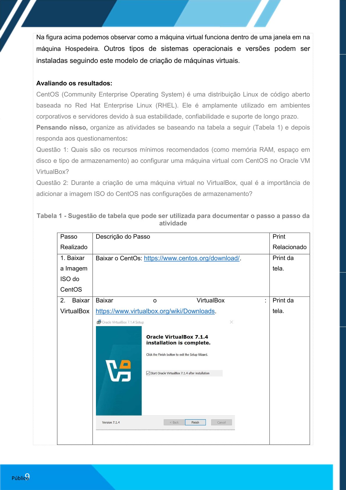 | 2. Baixar VirtualBox | Download no site oficial | Print da tela |