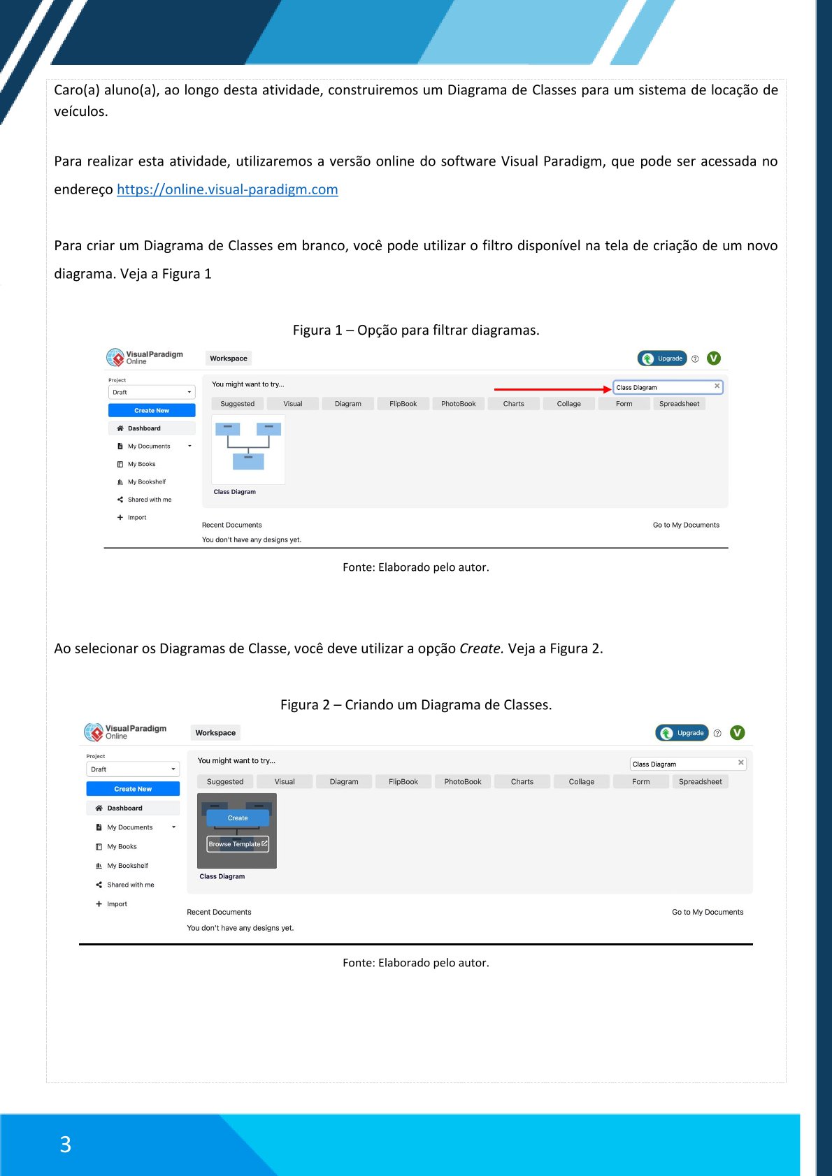 Para realizar esta atividade, utilizaremos a versão online do software Visual Paradigm, que pode ser acessada no endereço: