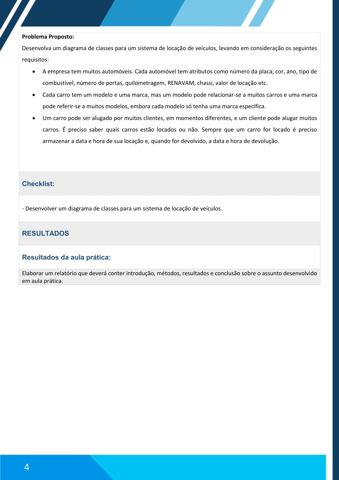 Caro(a) aluno(a), ao longo desta atividade, construiremos um Diagrama de Classes para um sistema de locação de veículos.