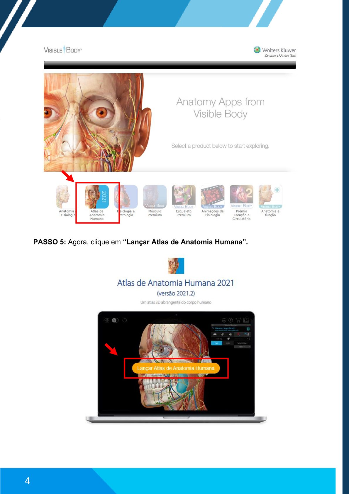 Clique em “Lançar Atlas de Anatomia Humana”