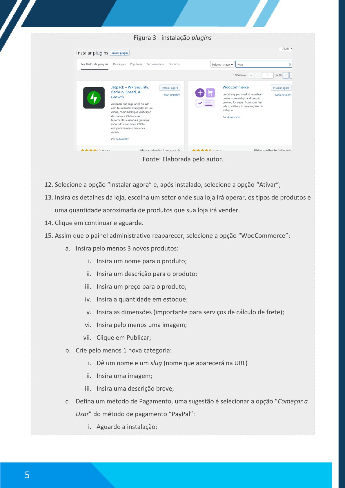 Realizar a instalação do plugin “WooCommerce” ao WordPress;