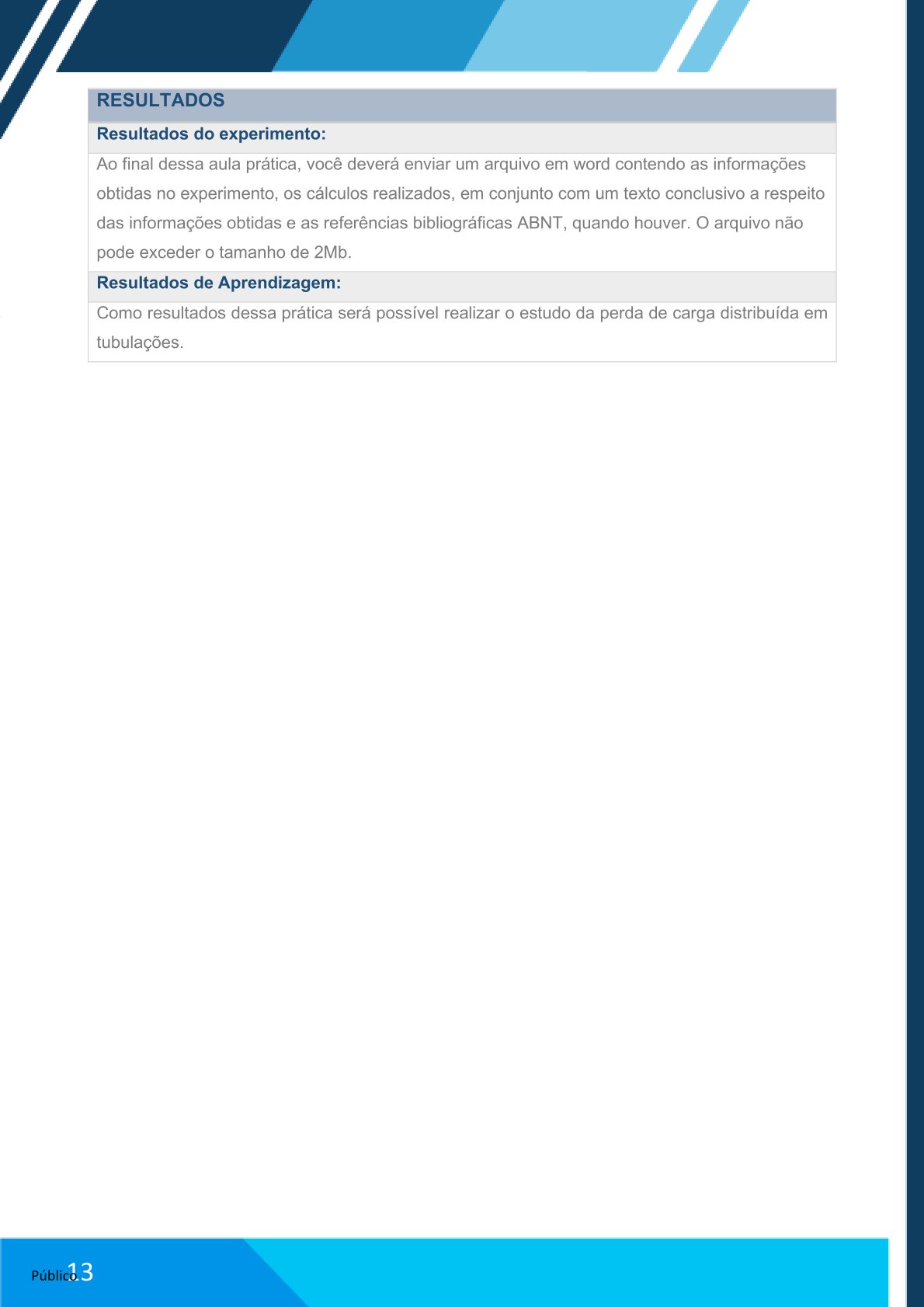 Ao final dessa aula prática, você deverá enviar um arquivo em Word contendo as informações obtidas no experimento, os cálculos realizados, um texto conclusivo e as referências bibliográficas ABNT (quando houver).