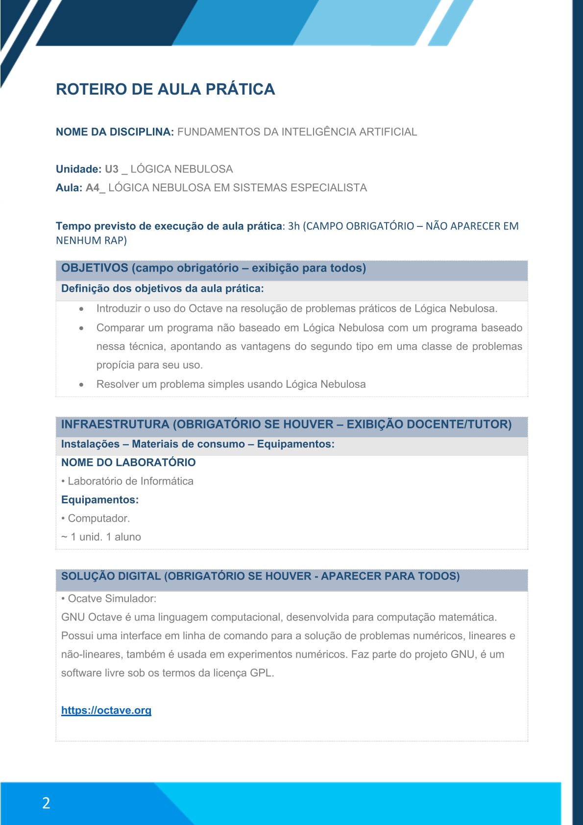 Introduzir o uso do Octave na resolução de problemas práticos de Lógica Nebulosa.