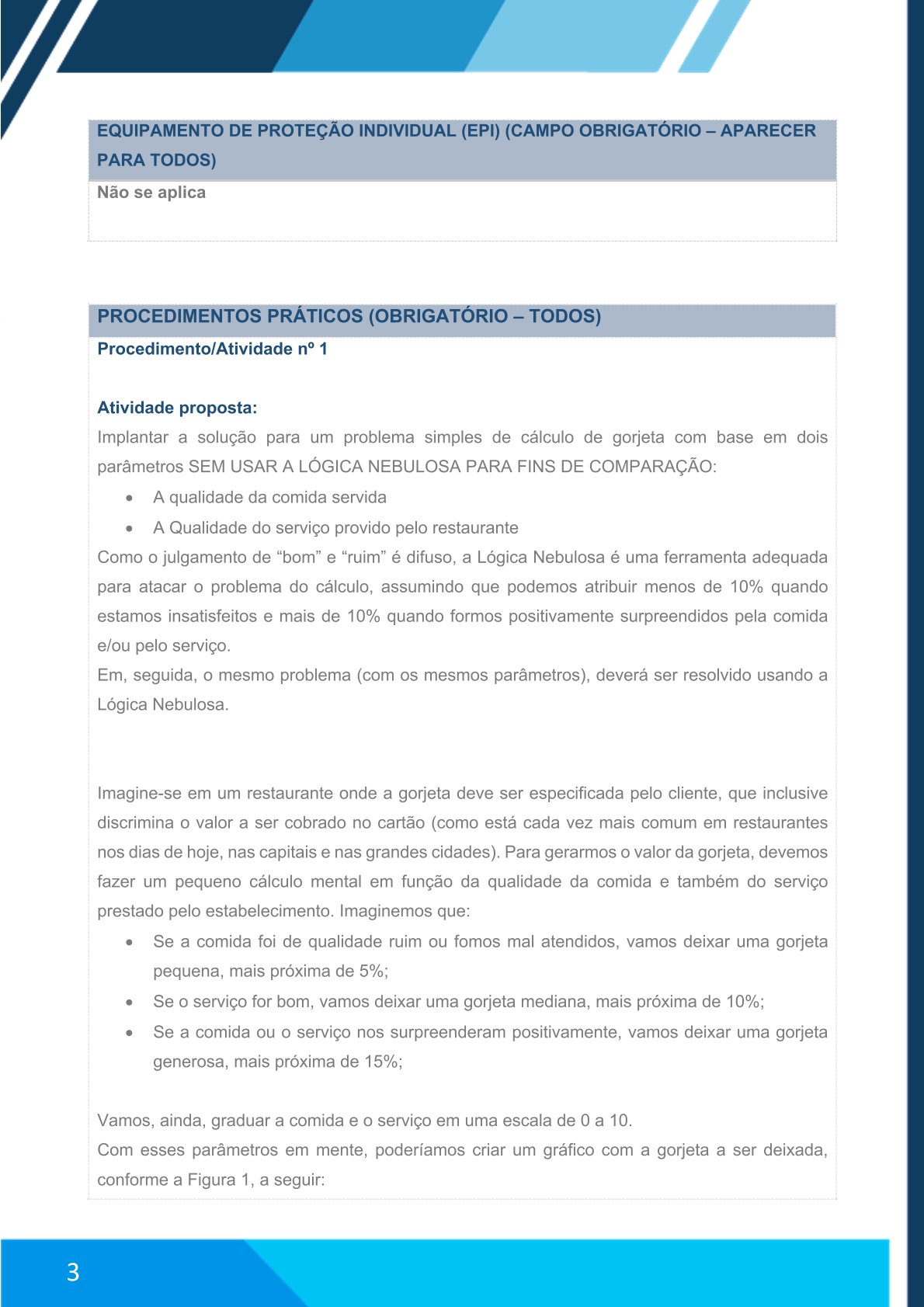 Implantar a solução para um problema simples de cálculo de gorjeta com base em dois parâmetros, sem usar Lógica Nebulosa (para fins de comparação):