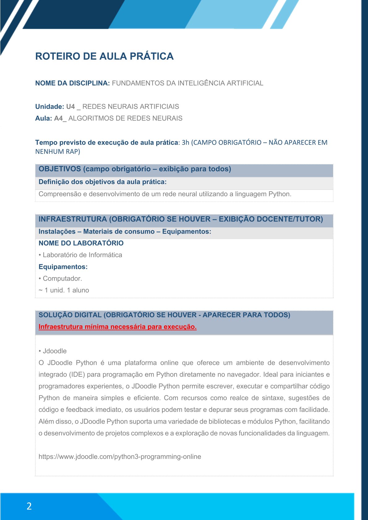 ROTEIRO DE AULA PRÁTICA – FUNDAMENTOS DA INTELIGÊNCIA ARTIFICIAL