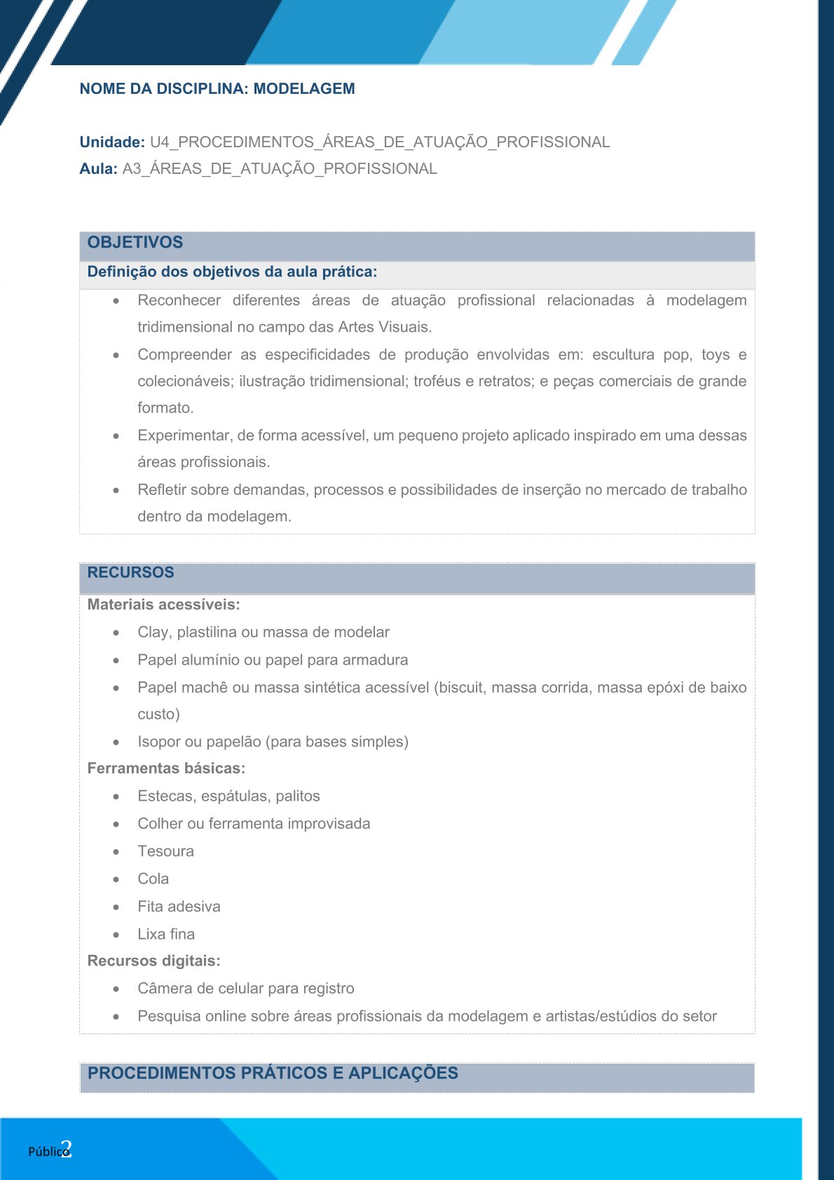 Reconhecer diferentes áreas de atuação profissional relacionadas à modelagem tridimensional no campo das Artes Visuais.