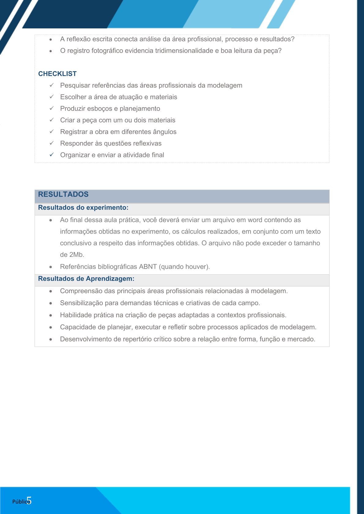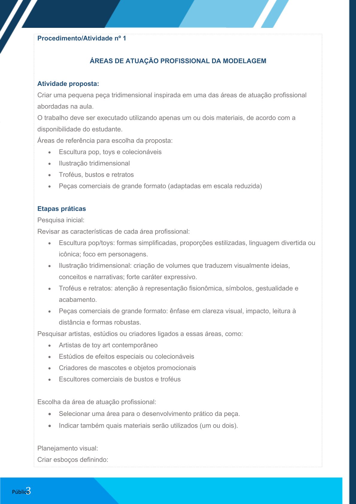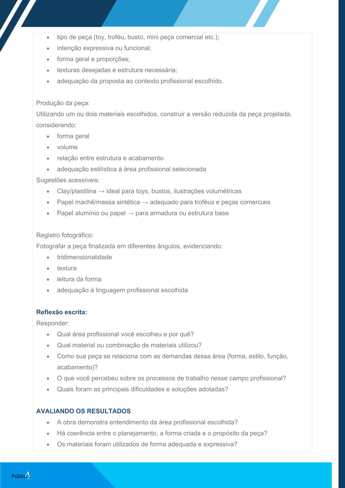 Criar uma pequena peça tridimensional inspirada em uma das áreas profissionais abordadas na aula.