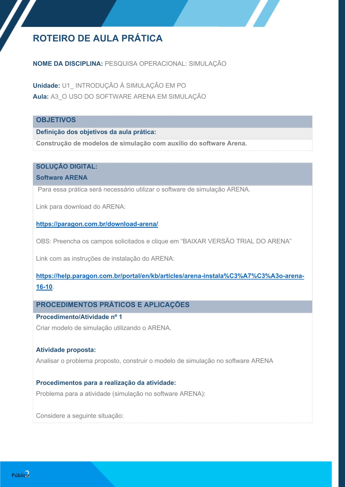 Aula: A3_O USO DO SOFTWARE ARENA EM SIMULAÇÃO