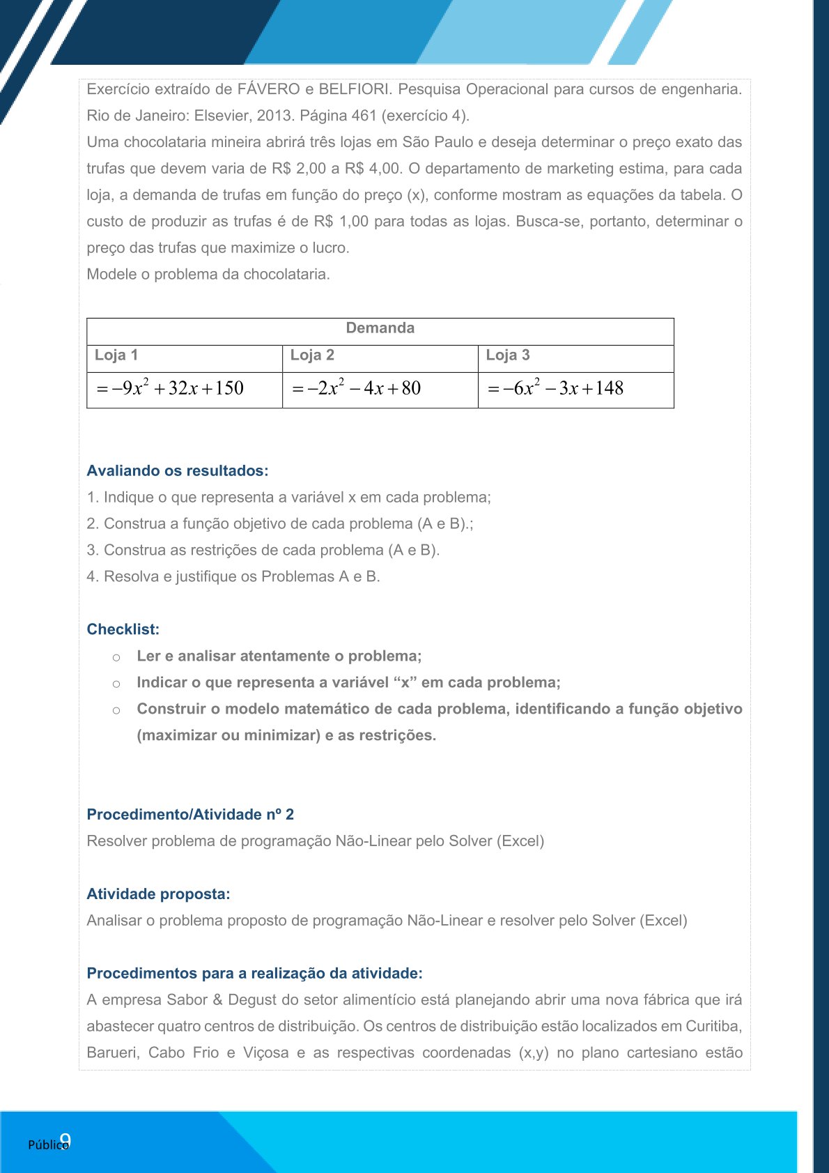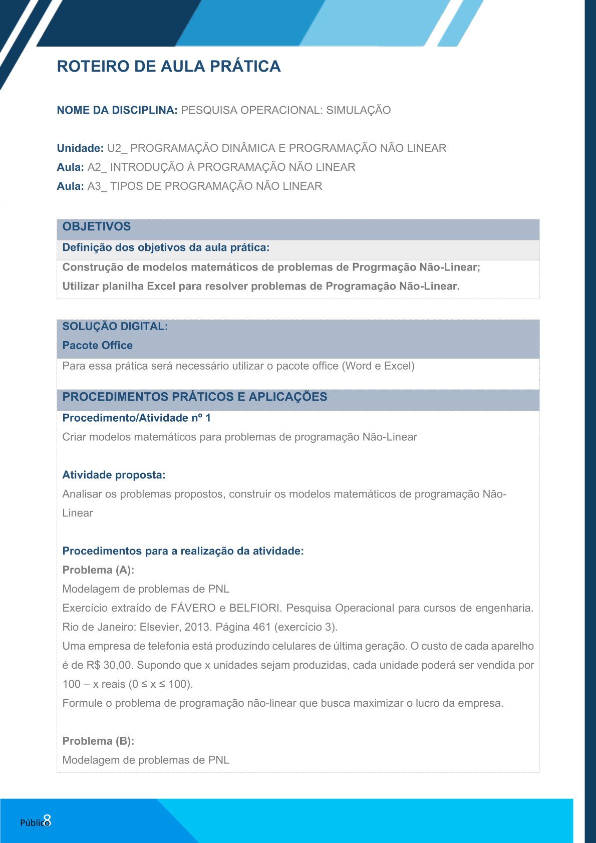 Unidade: U2_ PROGRAMAÇÃO DINÂMICA E PROGRAMAÇÃO NÃO LINEAR