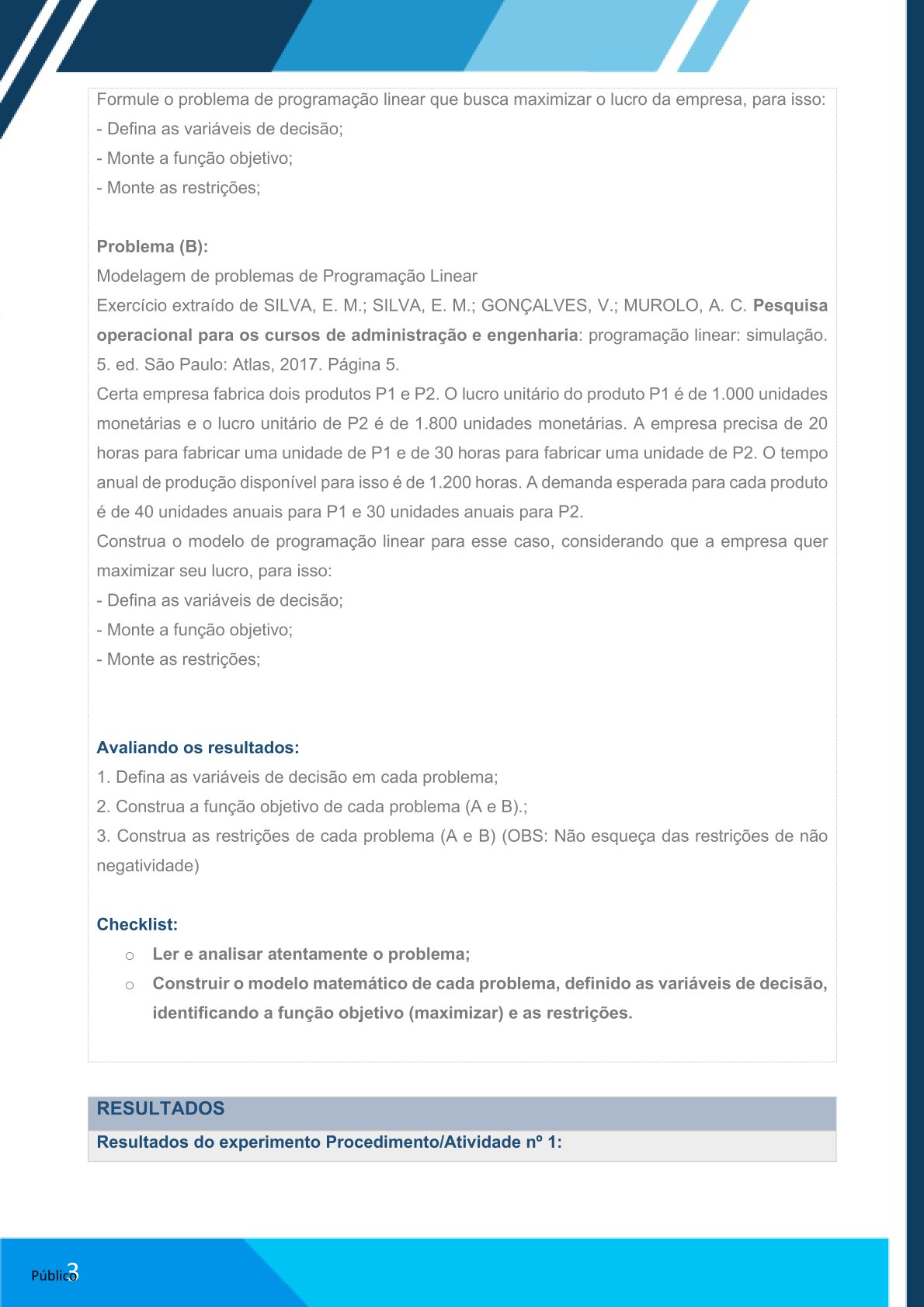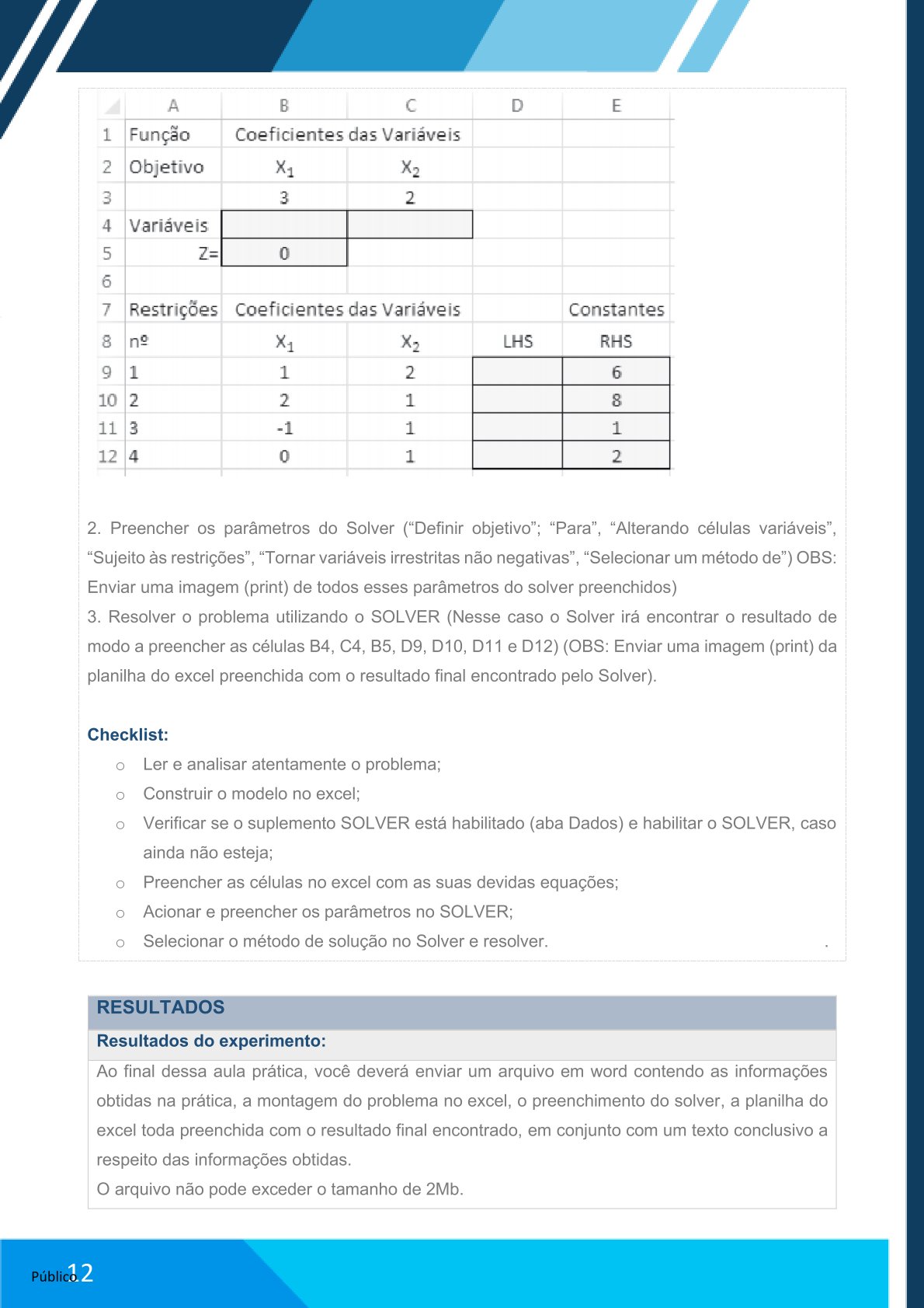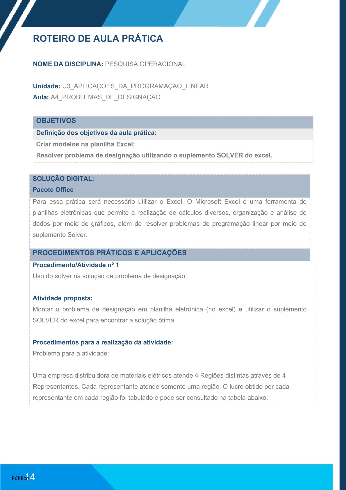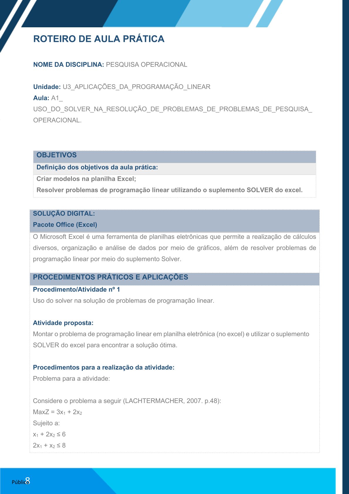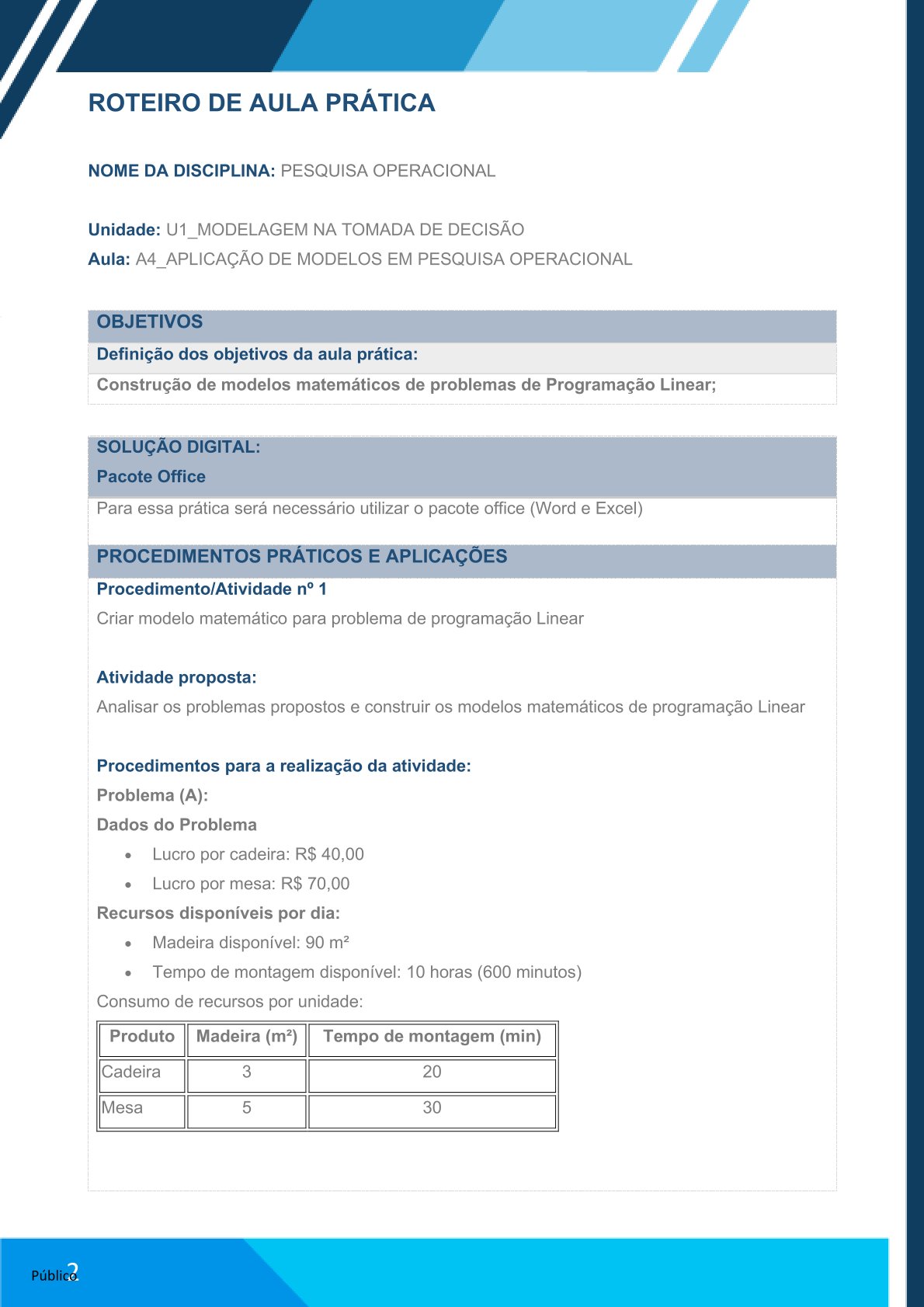 ROTEIRO DE AULA PRÁTICA – PESQUISA OPERACIONAL