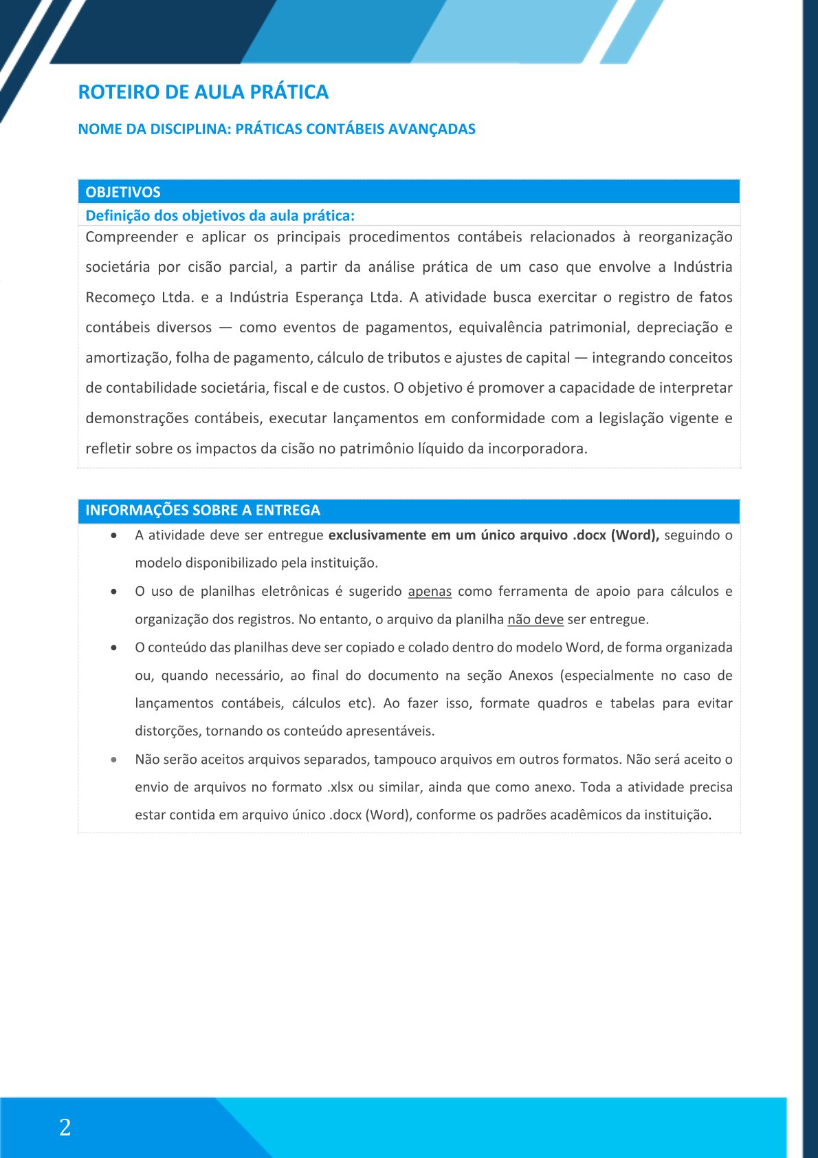 Entregar um único arquivo .docx seguindo o modelo da instituição.