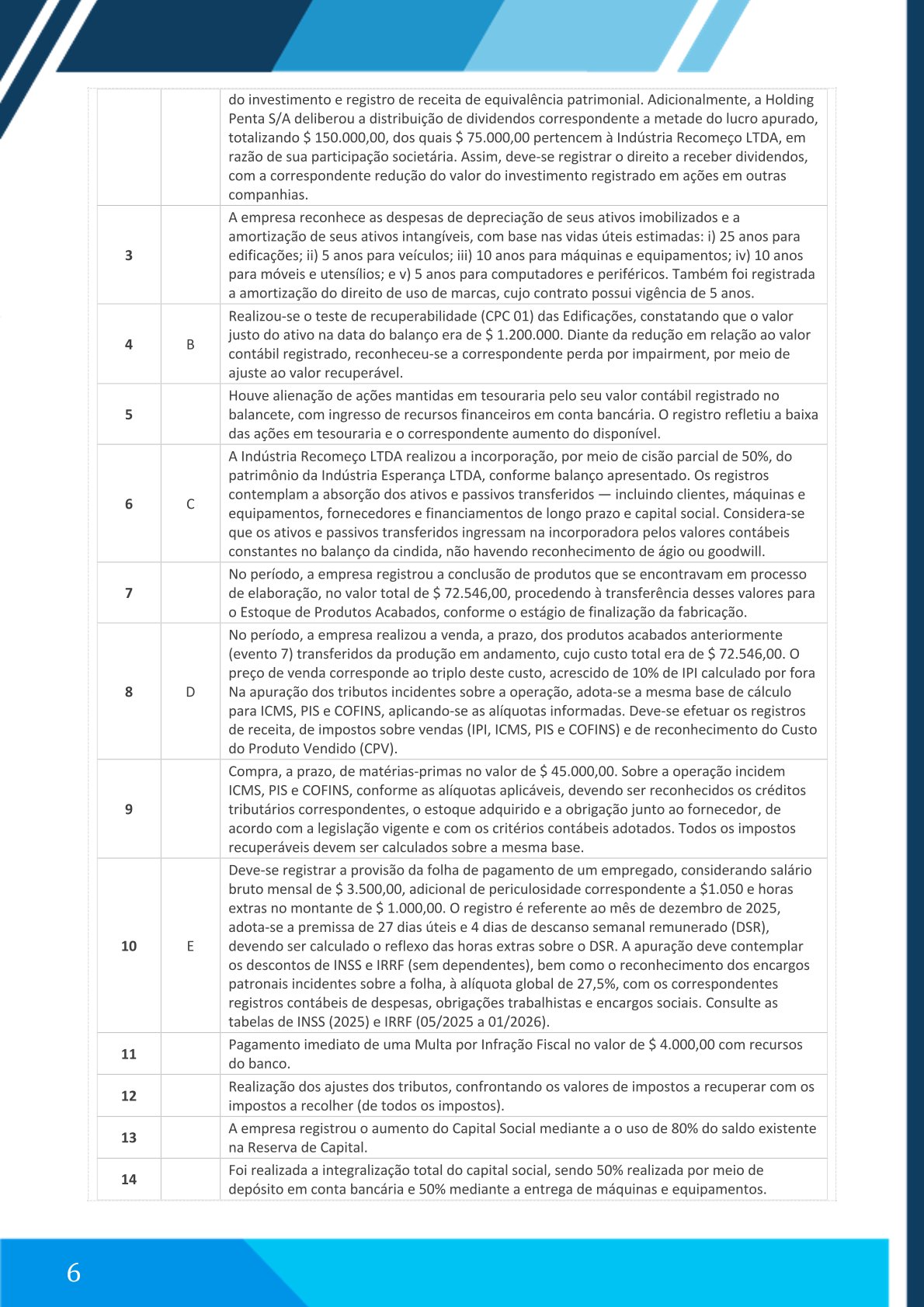 6. Eventos Contábeis a Serem Registrados