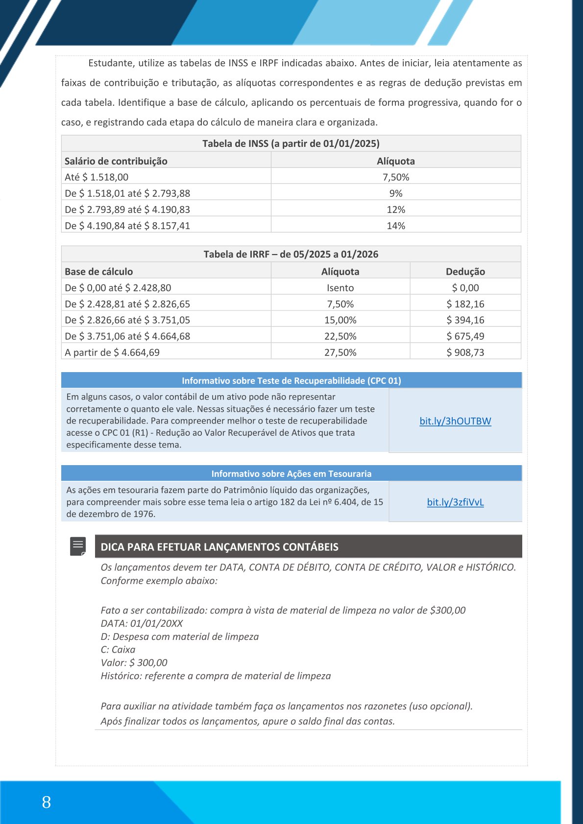 Aplicar procedimentos contábeis completos relacionados à: