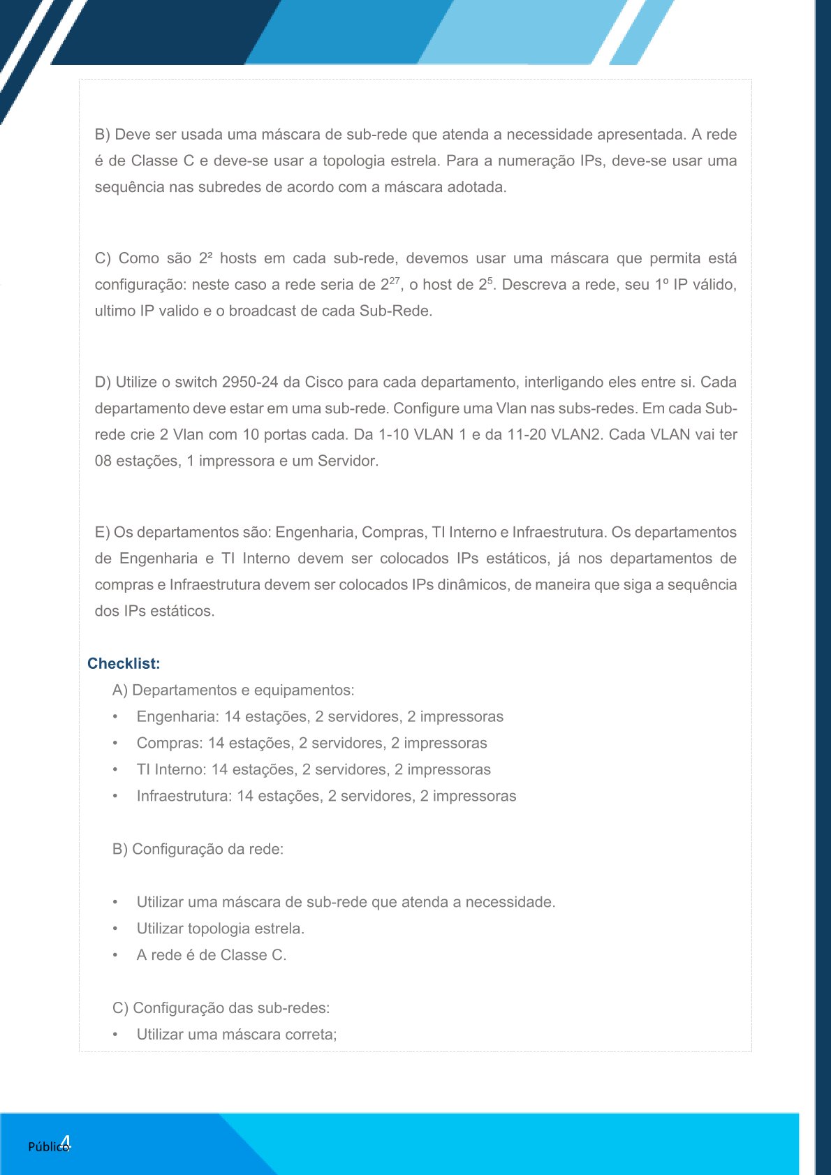 Utilizar máscara de sub-rede que atenda à necessidade apresentada