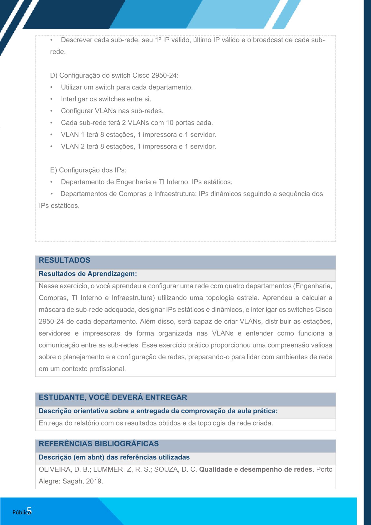 OLIVEIRA, D. B.; LUMMERTZ, R. S.; SOUZA, D. C. Qualidade e desempenho de redes. Porto Alegre: Sagah, 2019.