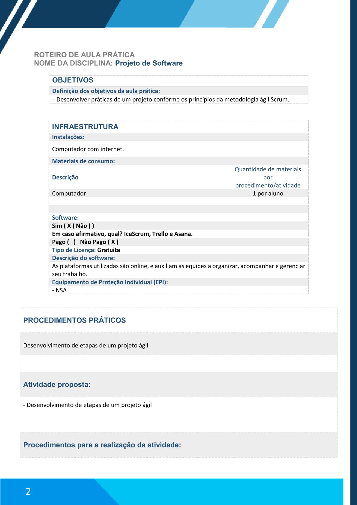 Desenvolver práticas de um projeto conforme os princípios da metodologia ágil Scrum.