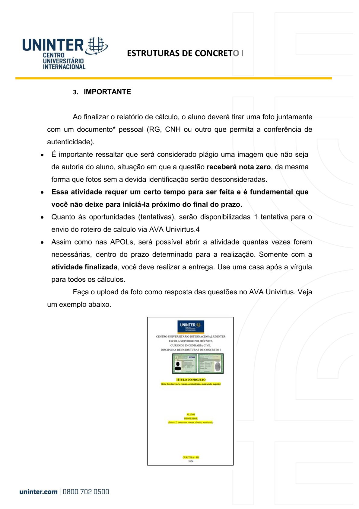 Será disponibilizada apenas 1 tentativa para envio no AVA Univirtus.