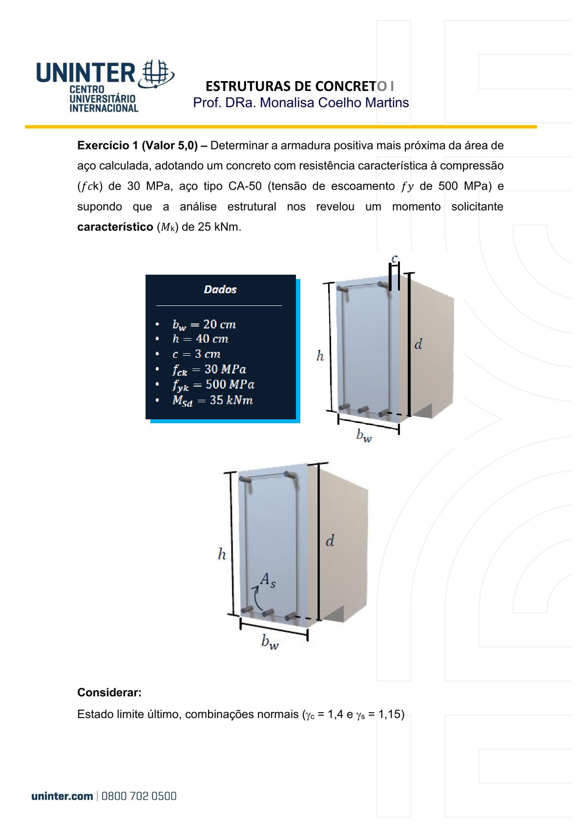 ✔ Parte 1 – Dimensionamento da Armadura Longitudinal Positiva (As)