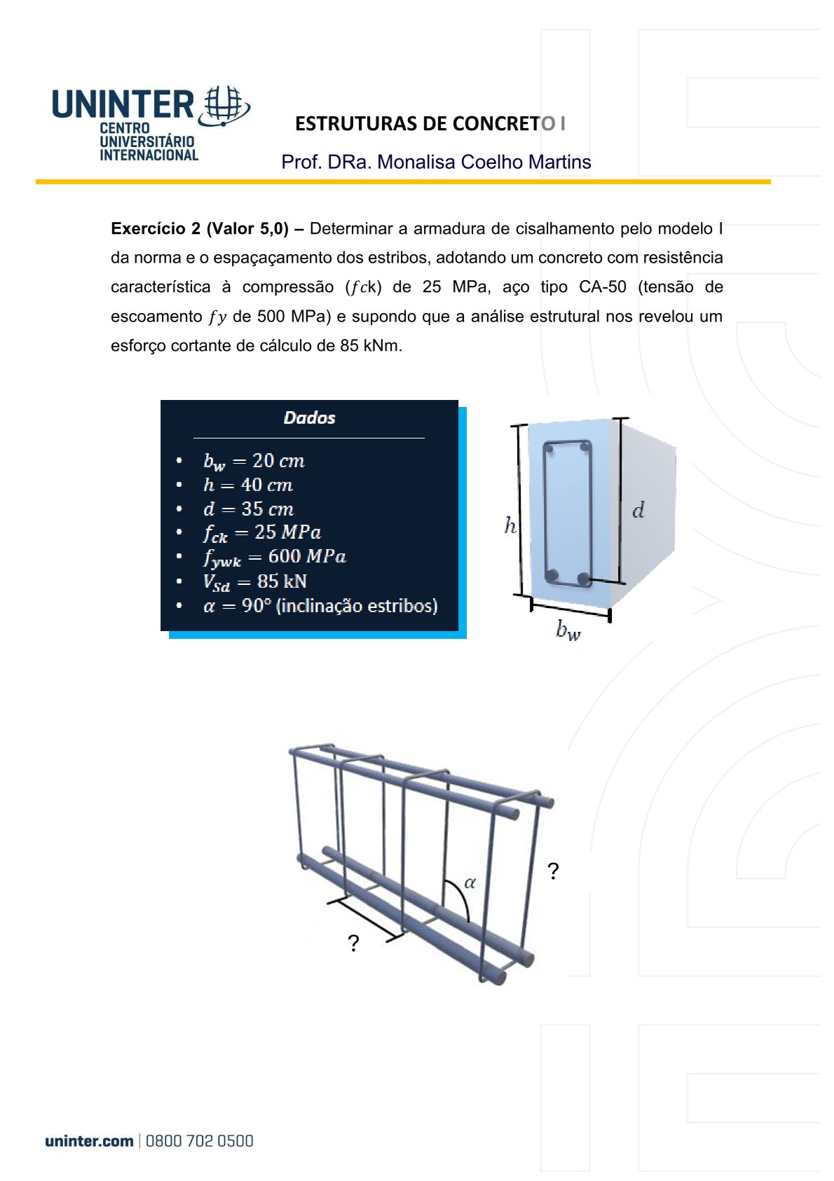 Determinar a armadura de cisalhamento pelo Modelo I da norma e o espaçamento dos estribos.