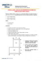 Exercício 1 (Valor 1,0 pt.) – Determinar os momentos fletores de cálculo atuantes no painel de laje e realizar a compatibilização dos momentos fletores positivos e negativos.