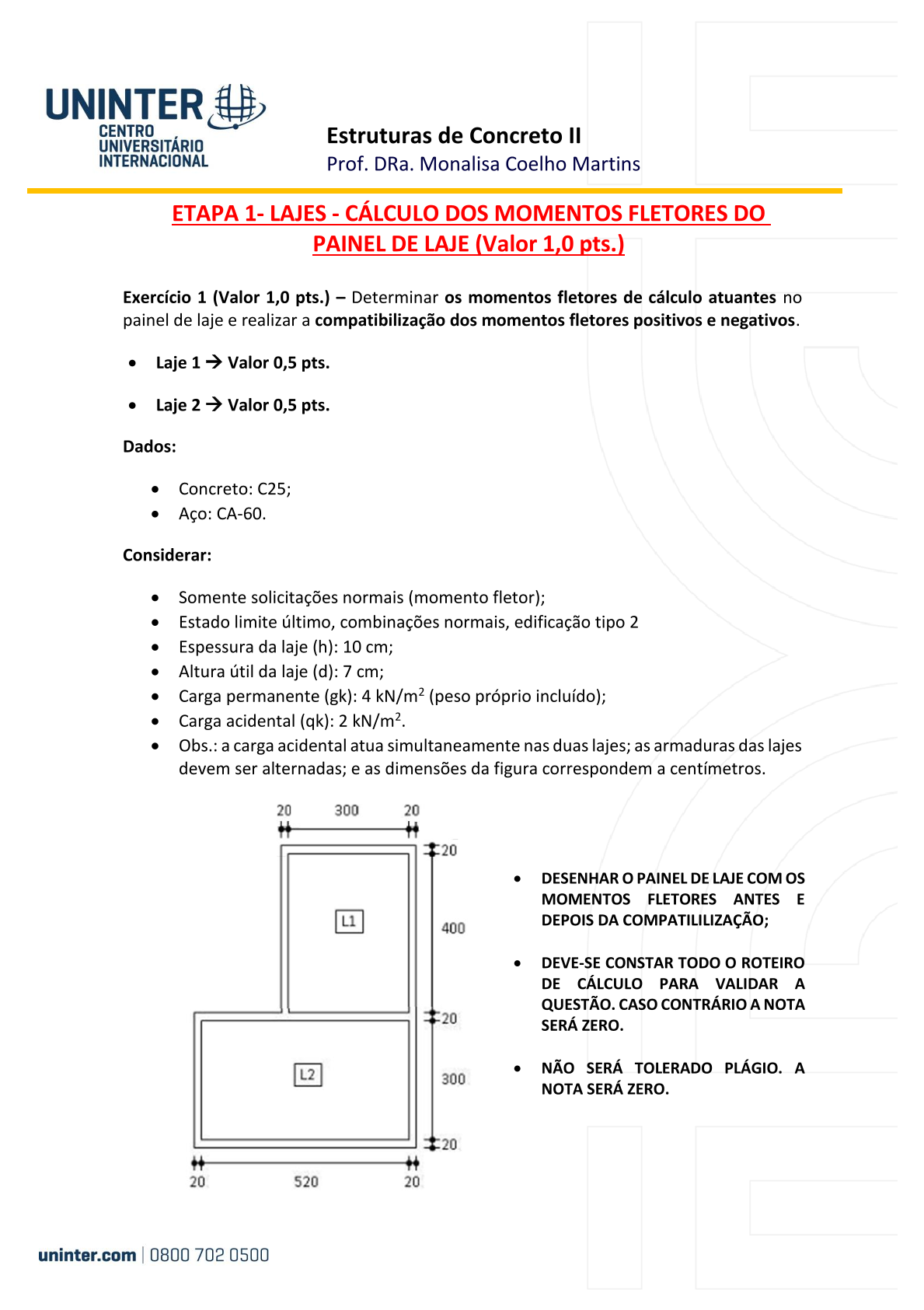 - Laje 3 → Valor 1,0 pt.