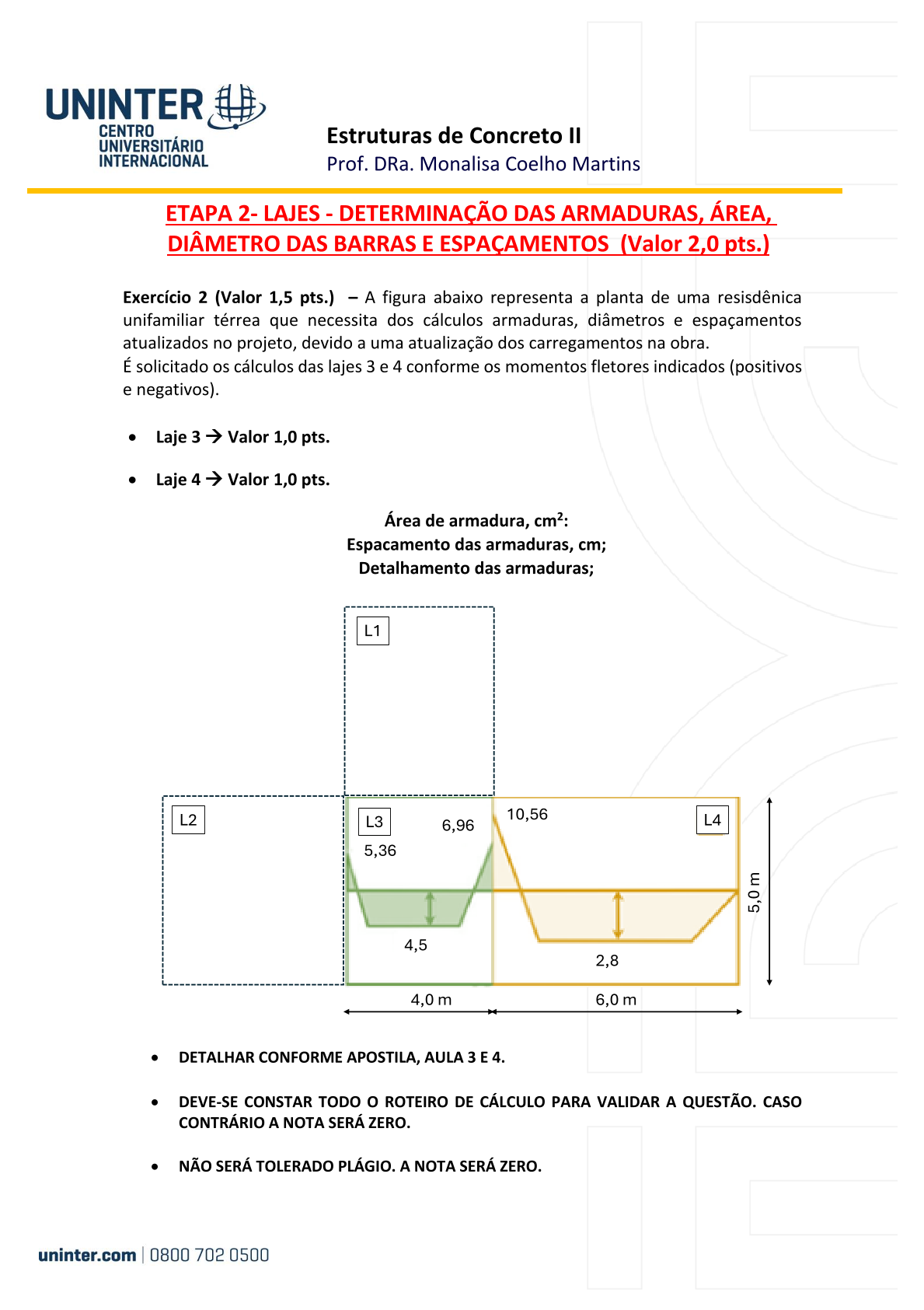 - Laje 4 → Valor 1,0 pt.